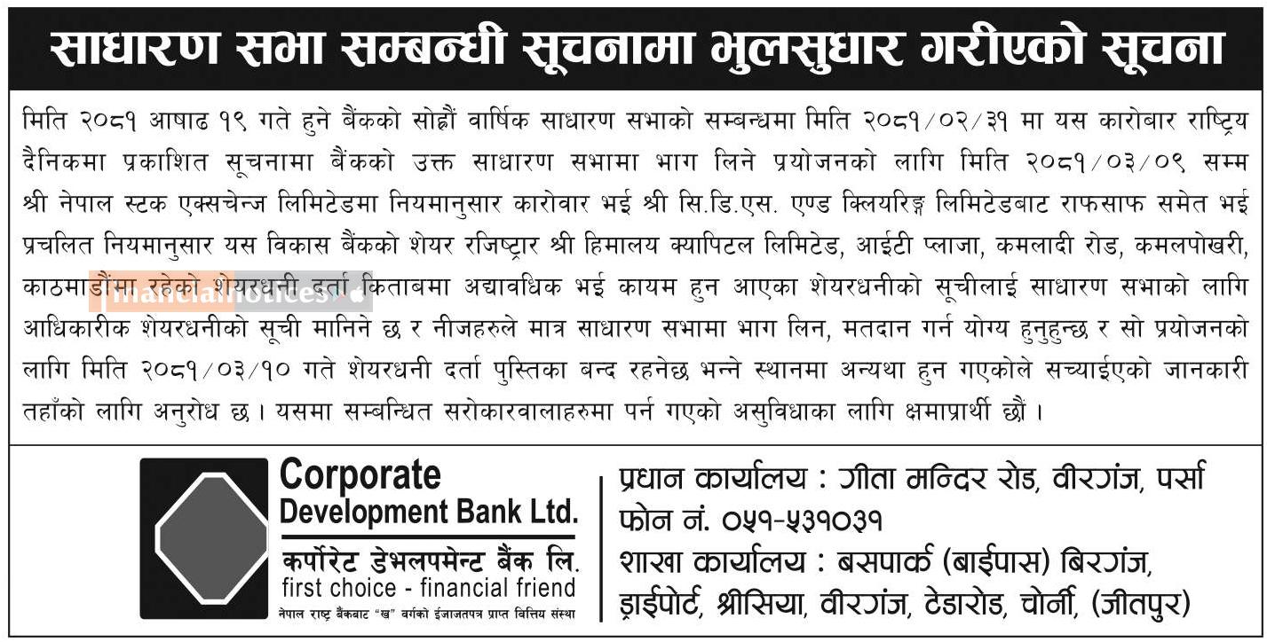 भुल सुधार गरिएको सम्बन्धी सूचना