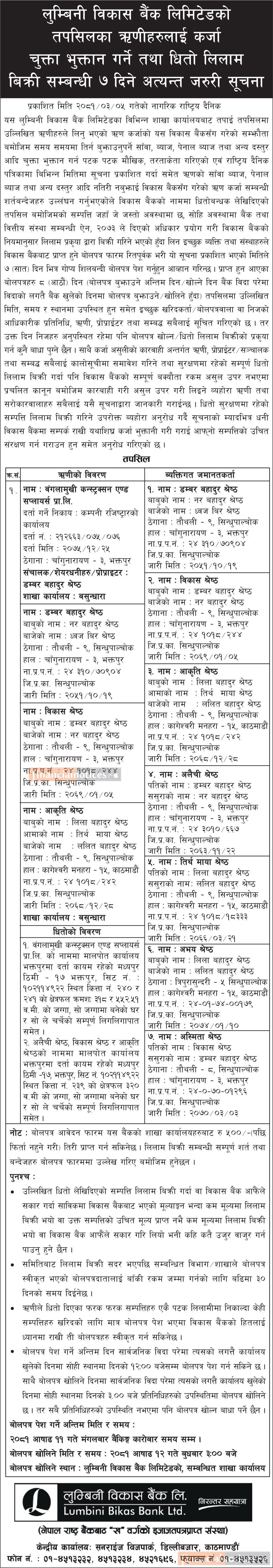 ऋणीहरुलाई कर्जा चुक्ता भुक्तान गर्ने तथा धितो लिलाम बिक्री सम्बन्धी सूचना -