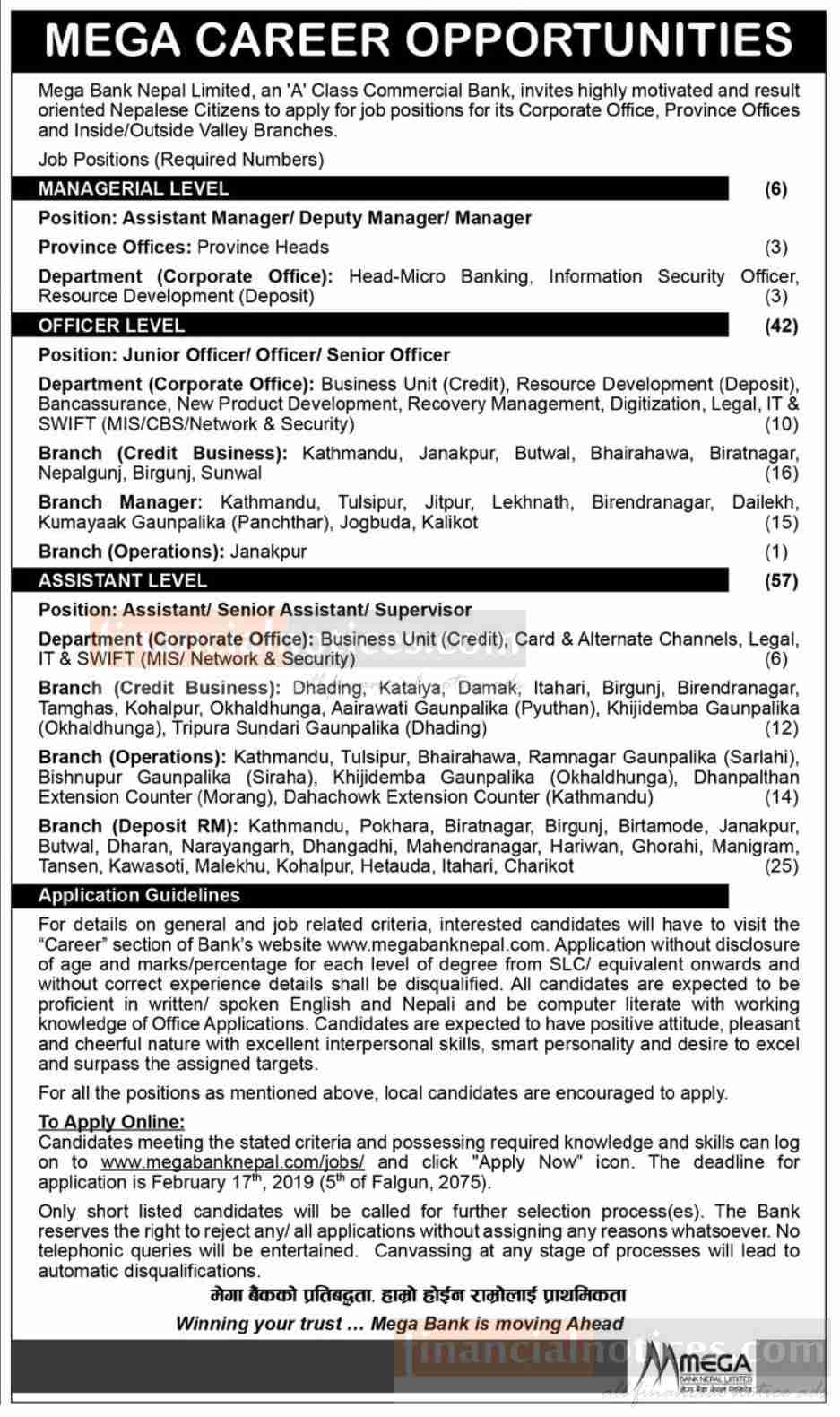 Mega Bank मा ठुलो सख्यामा जागिर खुल्यो !