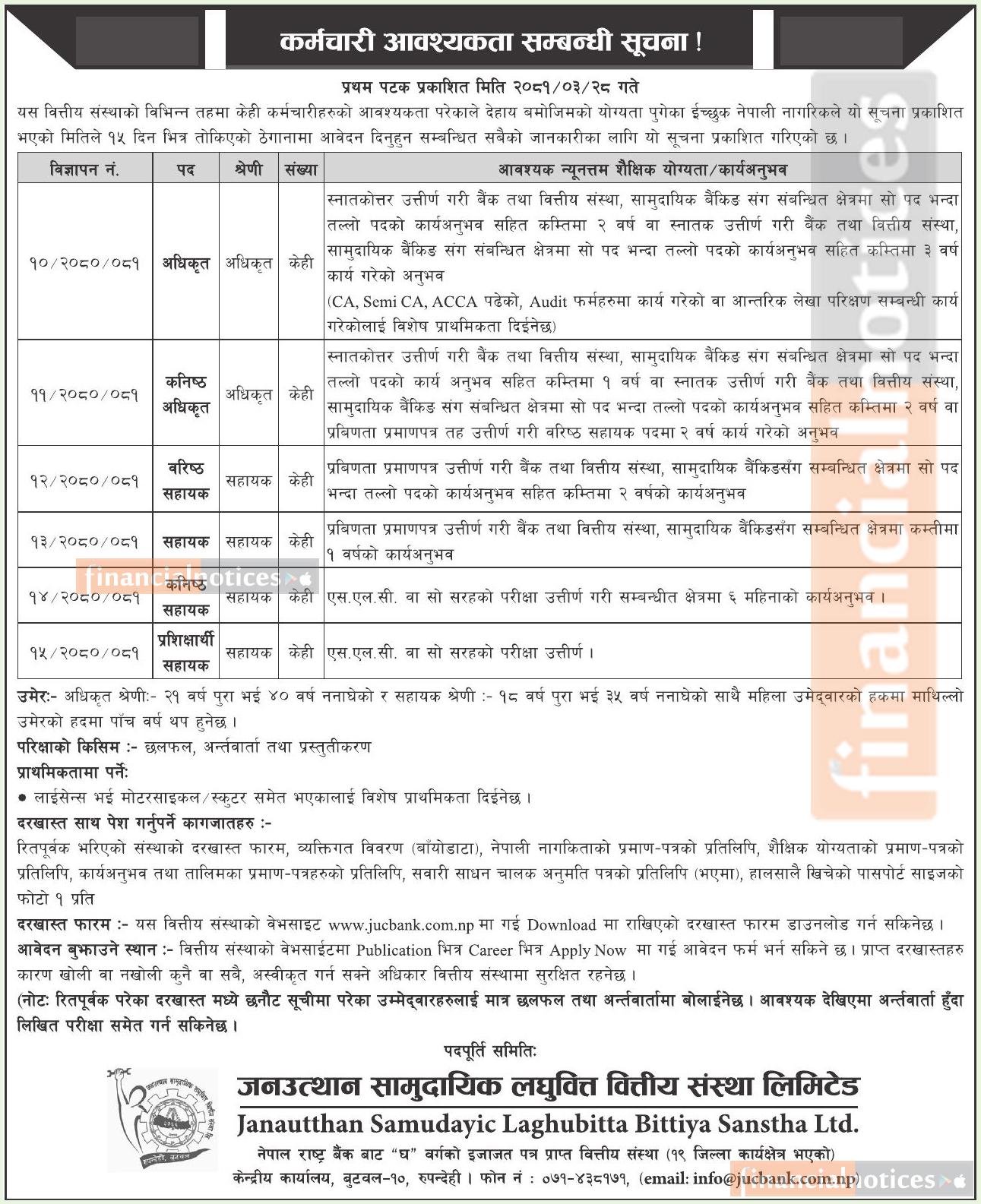 लघुवित्तमा कर्मचारी आवश्यकता सम्बन्धी सूचना