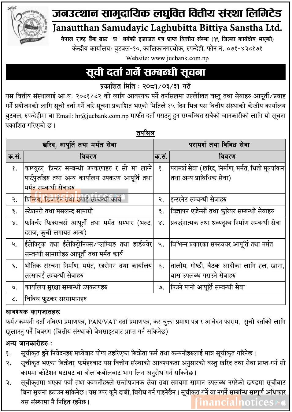 सूची दर्ता गर्ने सम्बन्धी सूचना