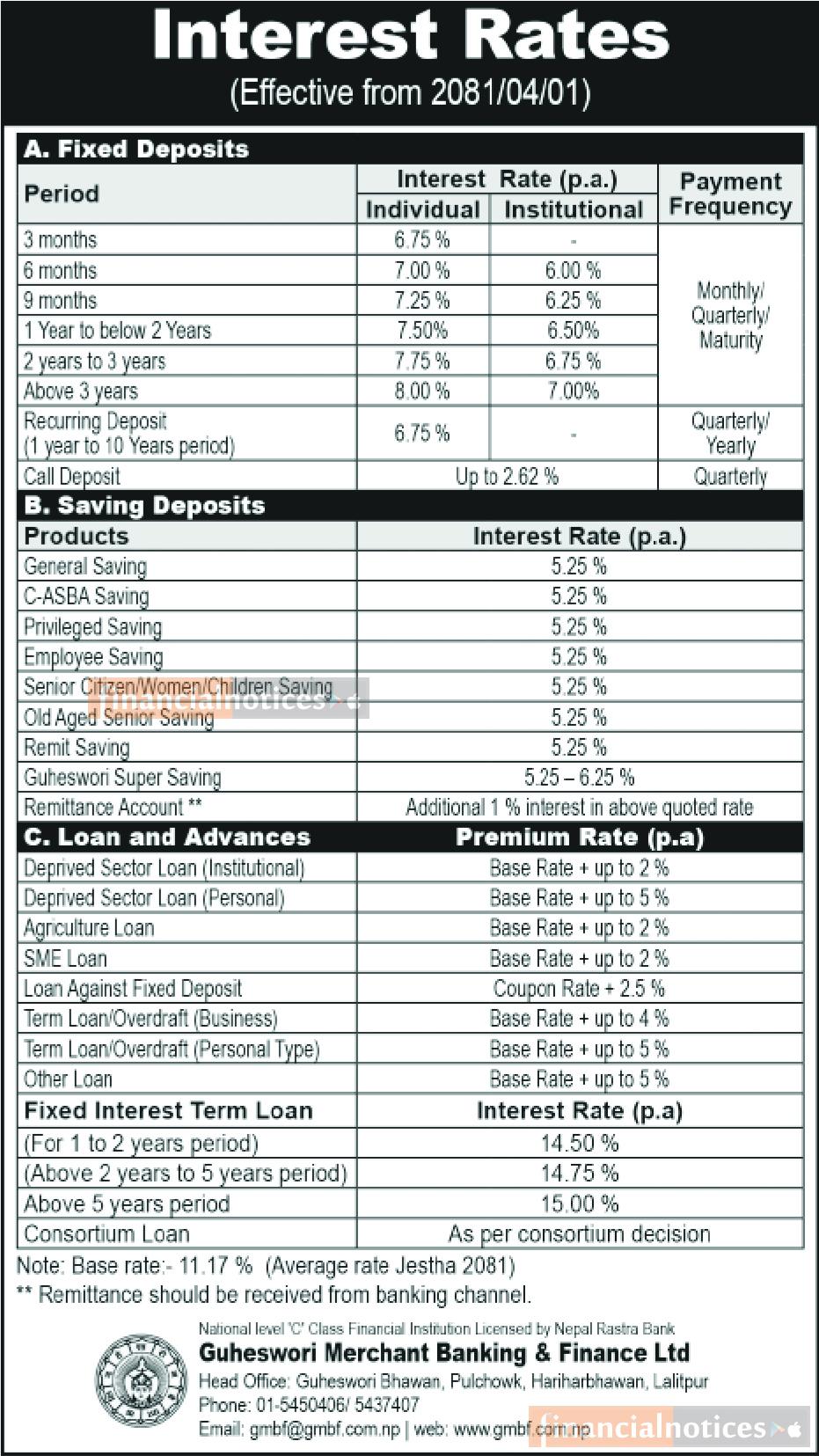 नयाँ ब्याजदर सार्वजानिक सम्बन्धी सूचना