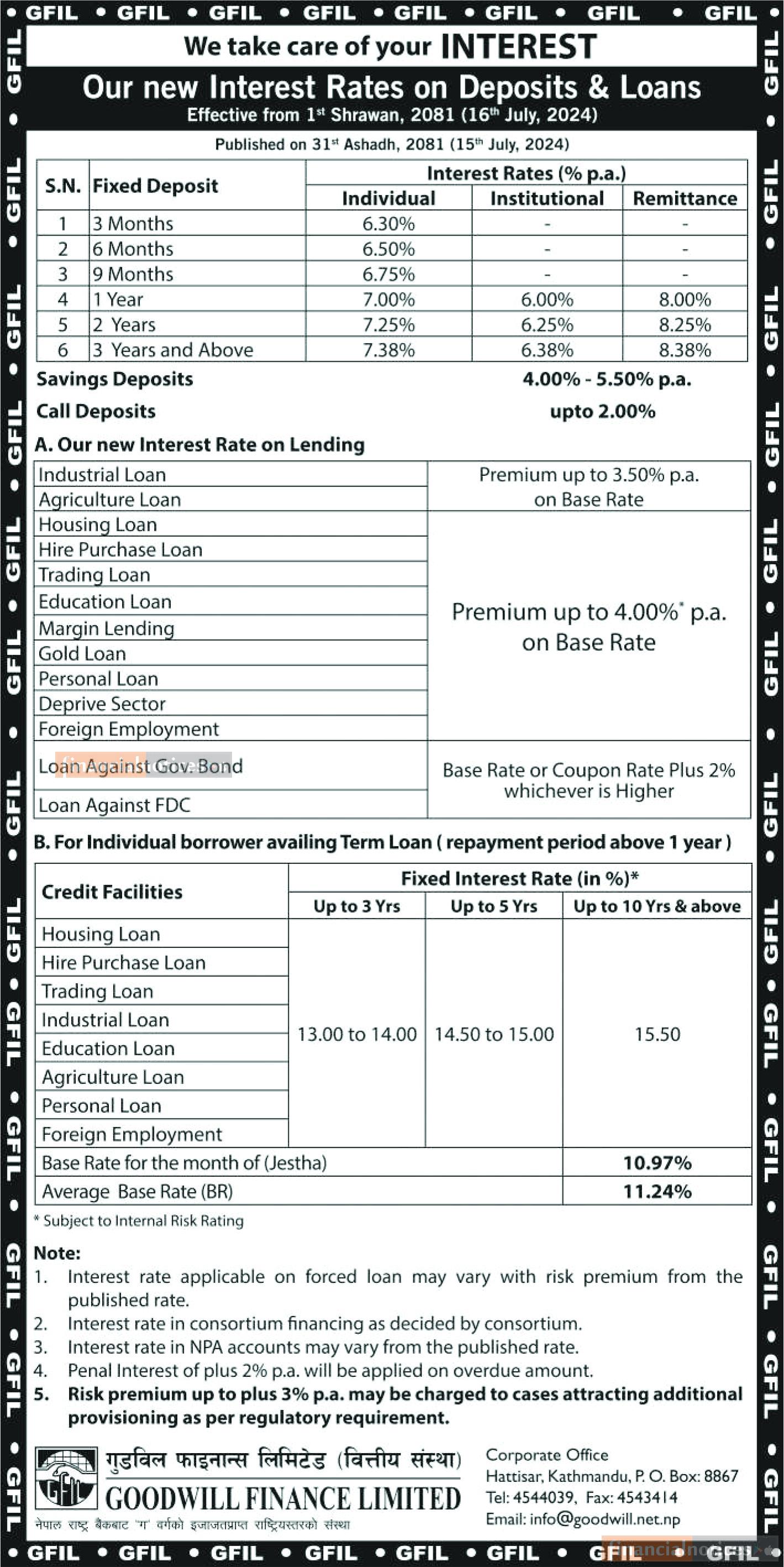 गुडविल फाइनान्सको नयाँ ब्याजदर सार्वजानिक सम्बन्धी सूचना
