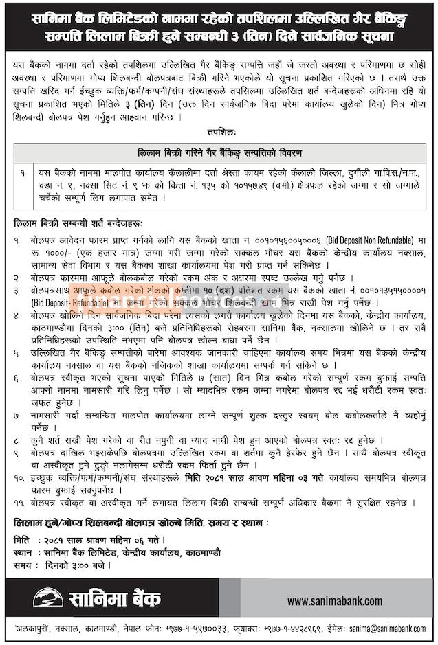 Kumari Bank Auction Notice for Non-Banking Assets at Mahendranagar, Kanchanpur -