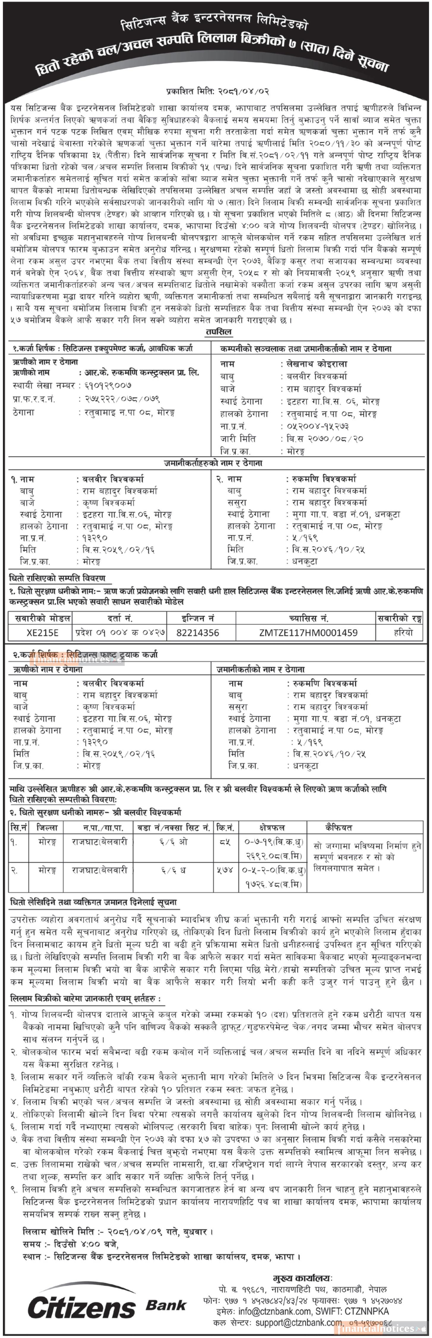 धितो रहेको चल र अचल सम्पत्ति लिलाम बिक्रीको ७ दिने सूचना