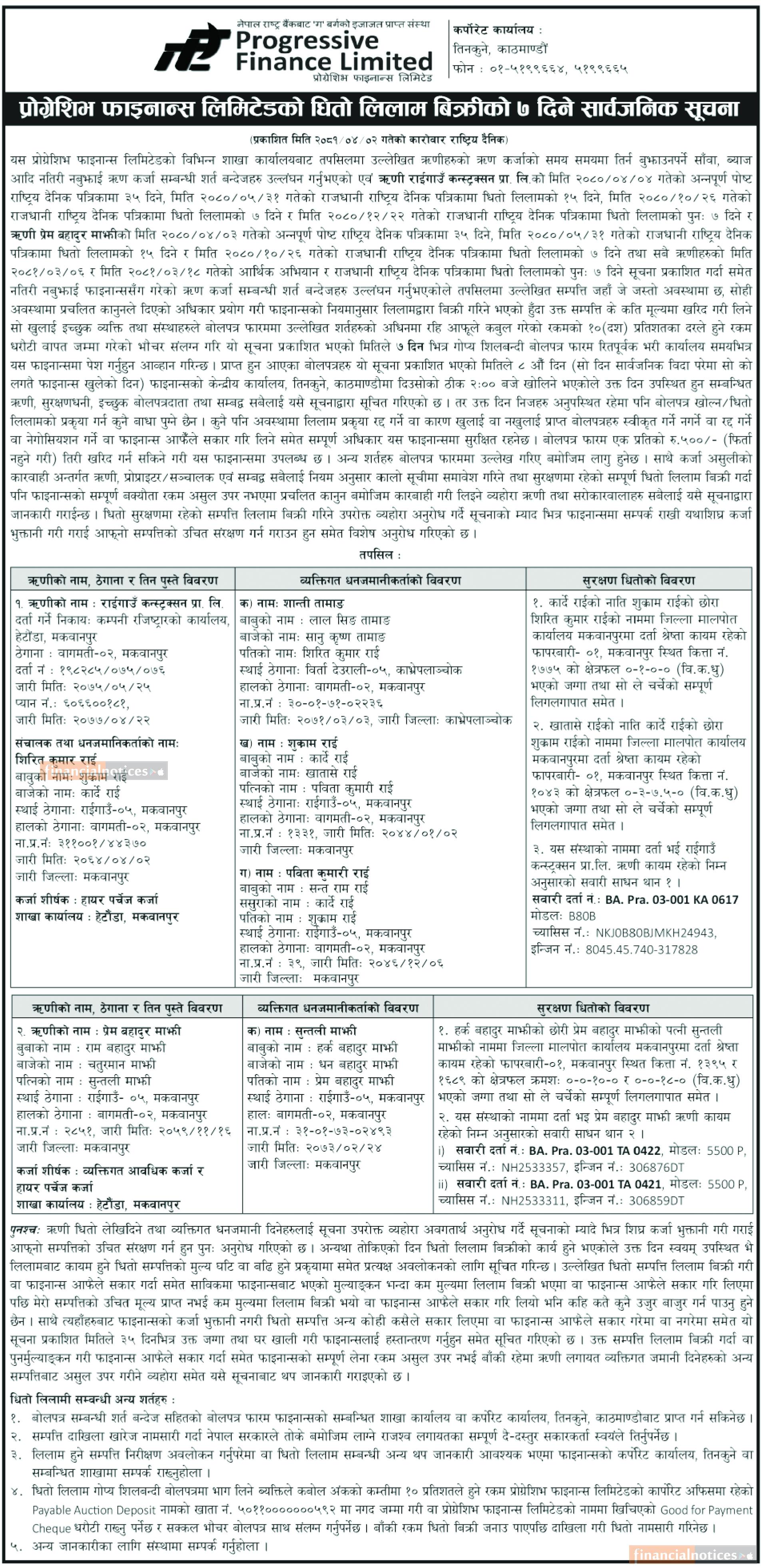 धितो लिलाम बिक्रीको ७ दिने सार्वजानिक सूचना