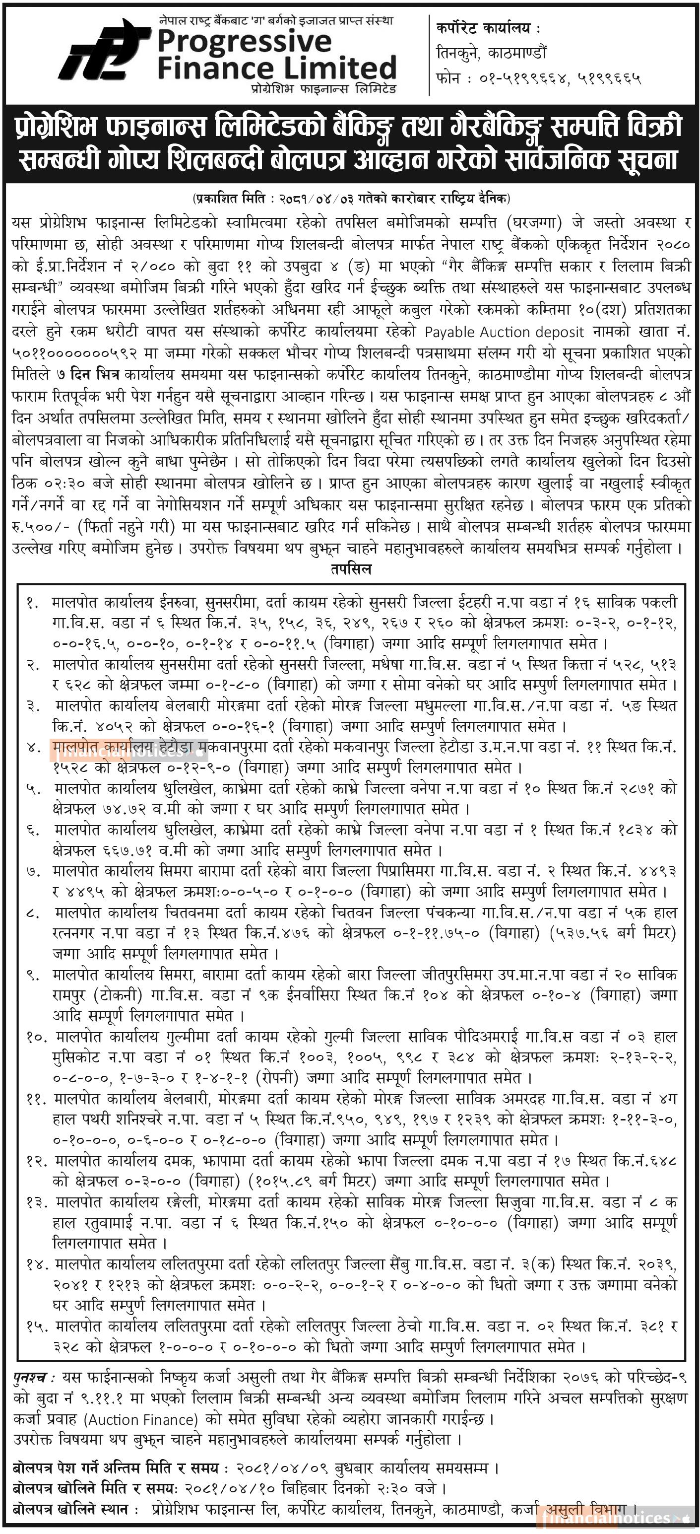 गैह्र बैंकिङ्ग सम्पत्ति बिक्री सम्बन्धी गोप्य शिलबन्दी बोलपत्र आव्हानको सूचना