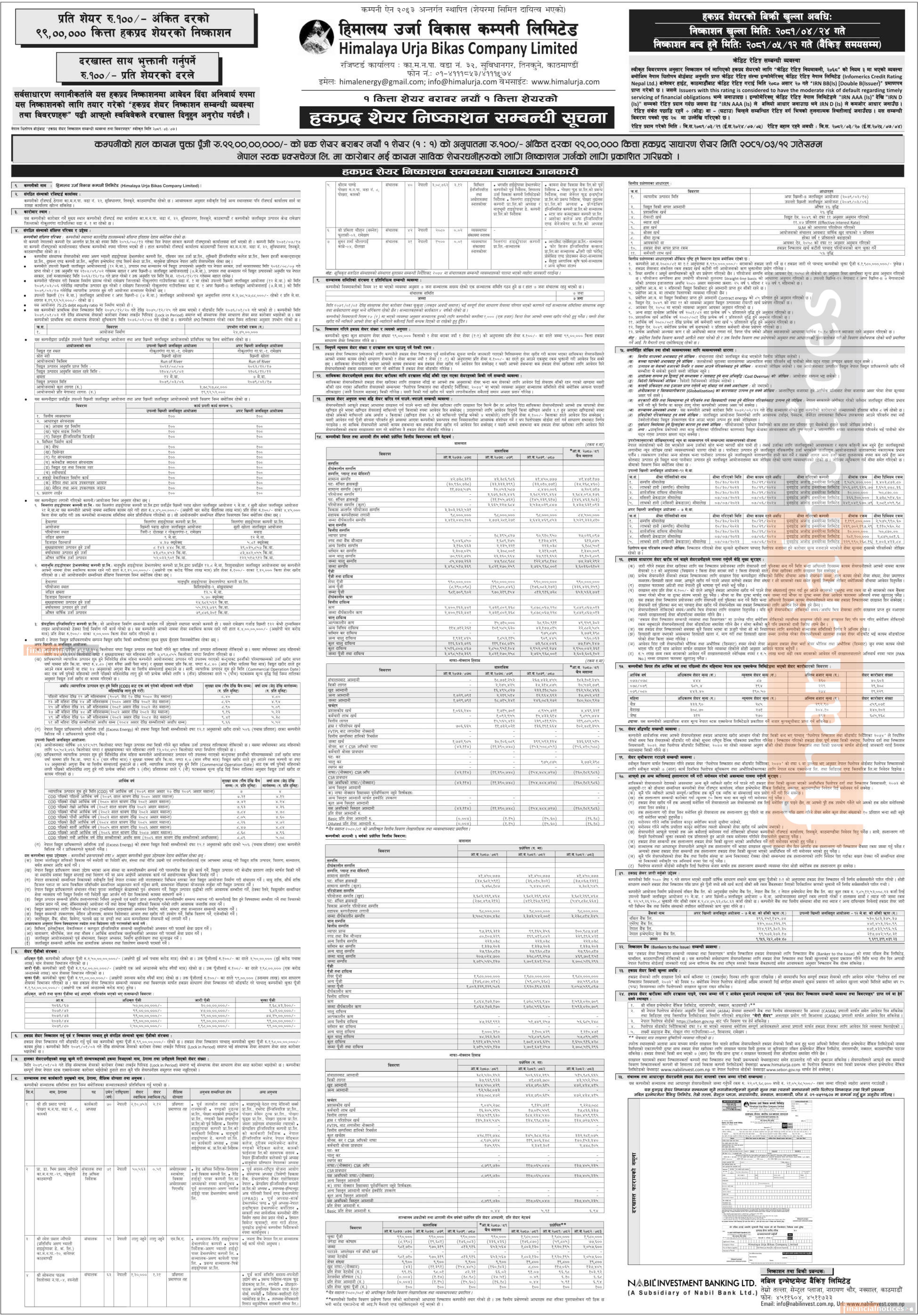हिमालय ऊर्जाले साउन २४ गतेदेखि हकप्रद सेयर जारी गर्ने बारे सूचना
