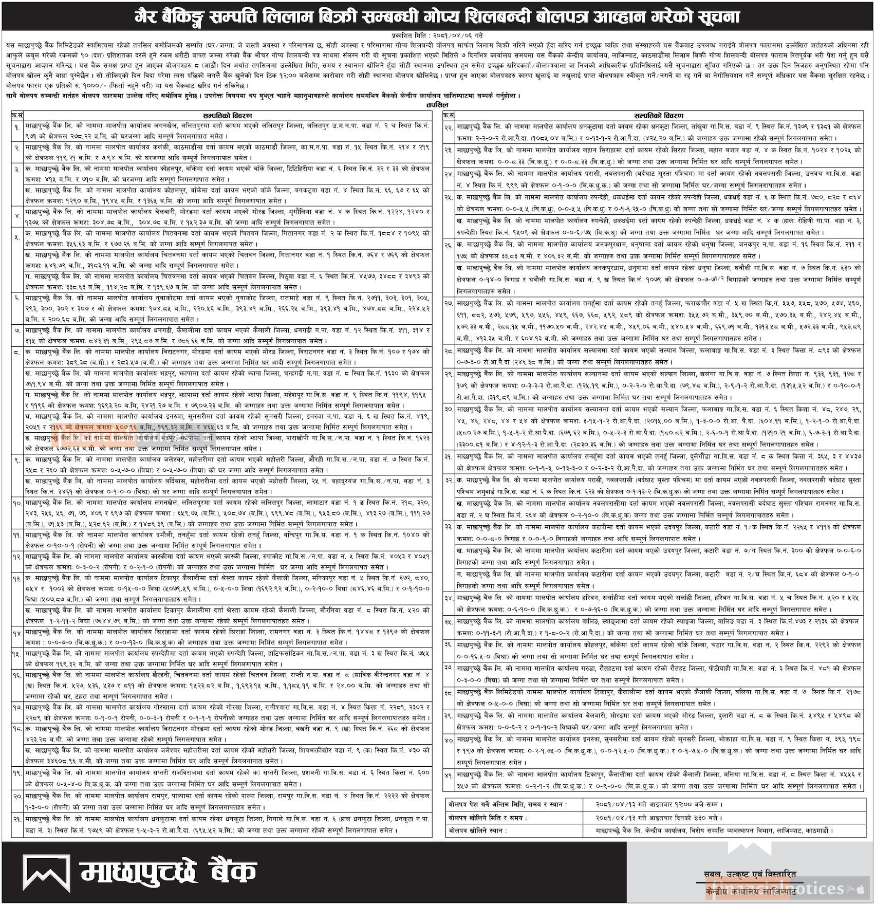 गैह्र बैंकिङ्ग सम्पत्ति बिक्री सम्बन्धी गोप्य शिलबन्दी बोलपत्र आव्हानको सूचना