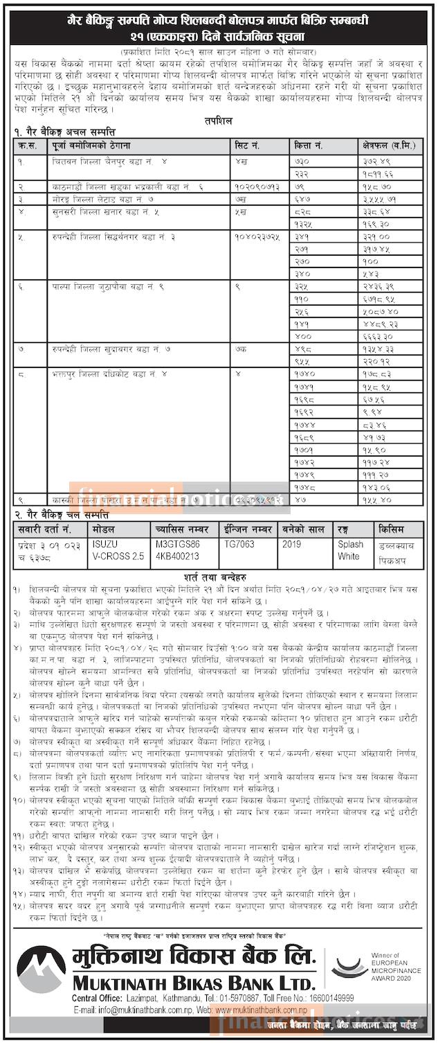 Kumari Bank Auction Notice for Non-Banking Assets at Mahendranagar, Kanchanpur -