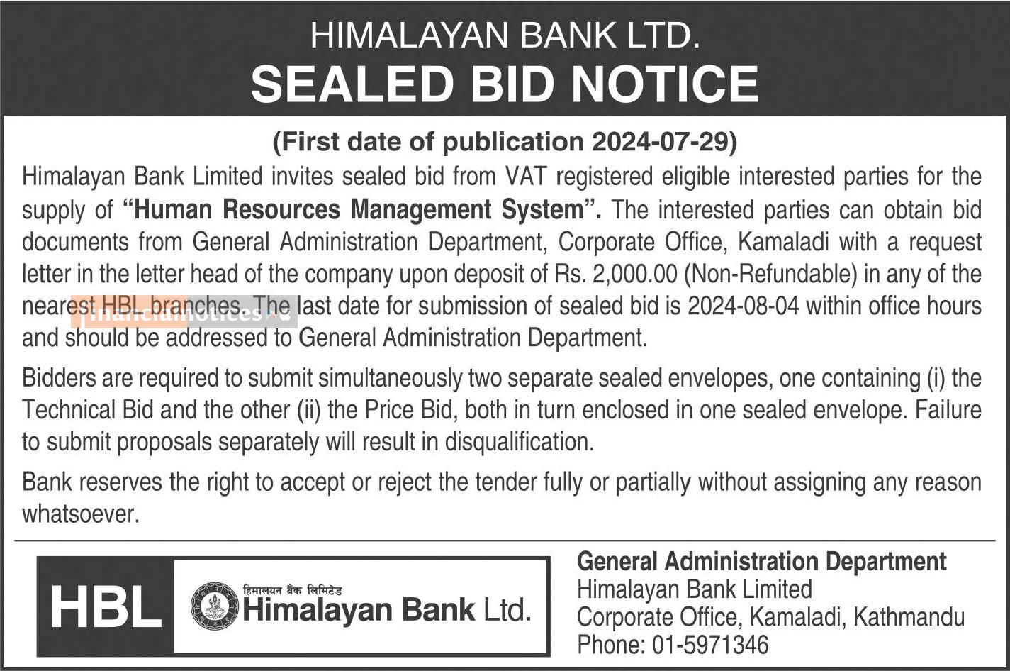 Published by Himalayan Bank Ltd on 2081-4-14