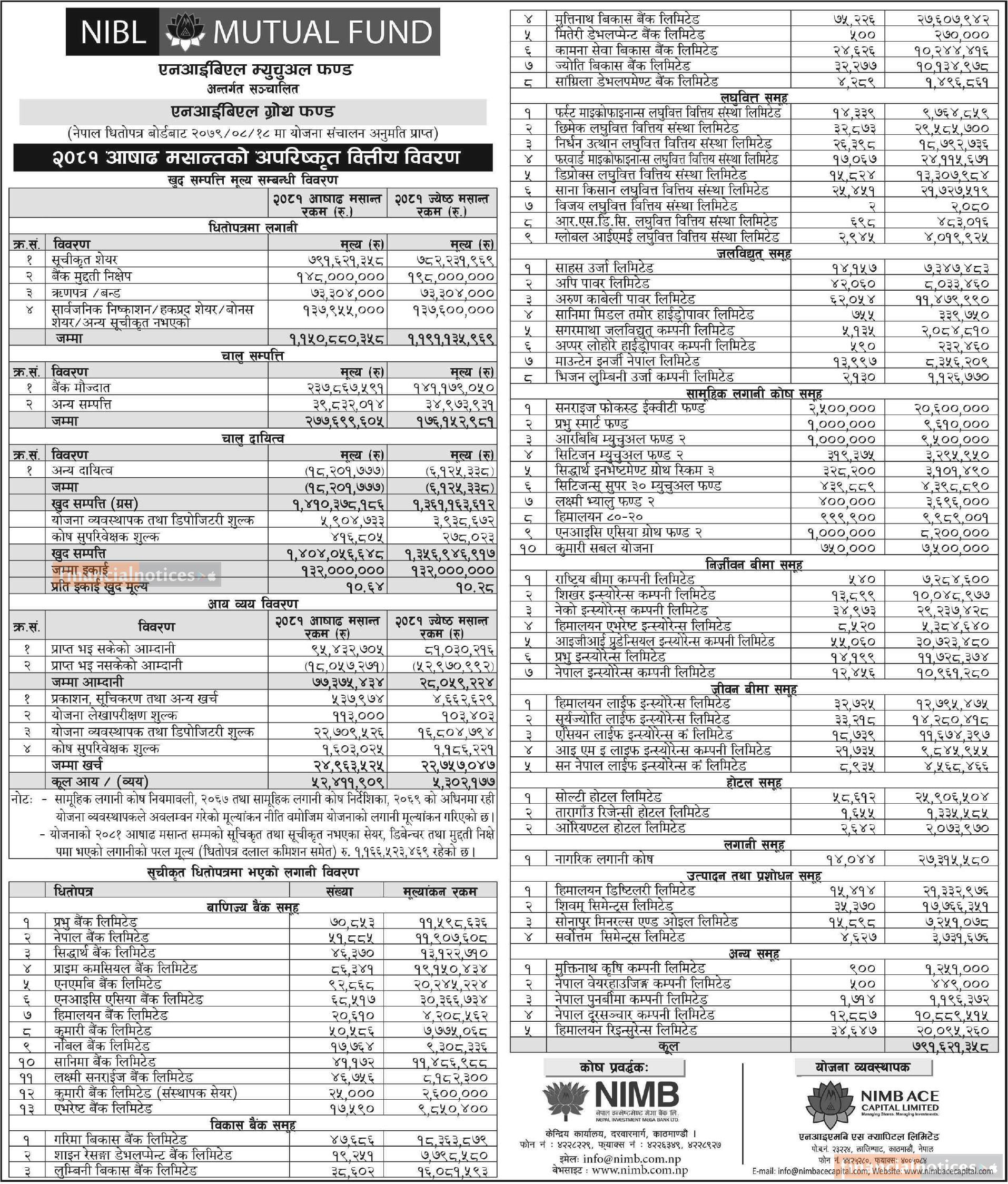 NIMB Ace Capital has published NIBL Growth Fund Net Assets Value till Ashad, 2081