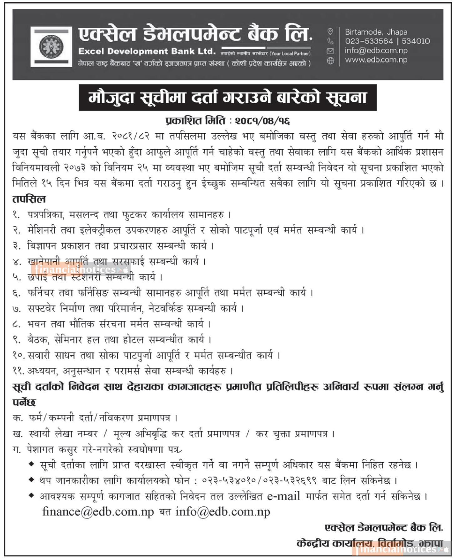 मौजुदा सूचीमा दर्ता गराउने बारेको सूचना