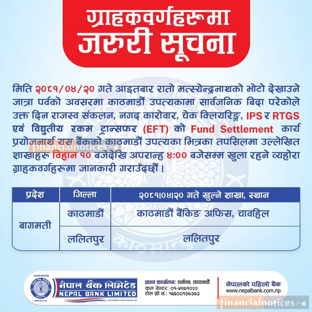 नेपाल बैंकका ग्राहकहरुलाई महत्त्वपूर्ण सूचना
