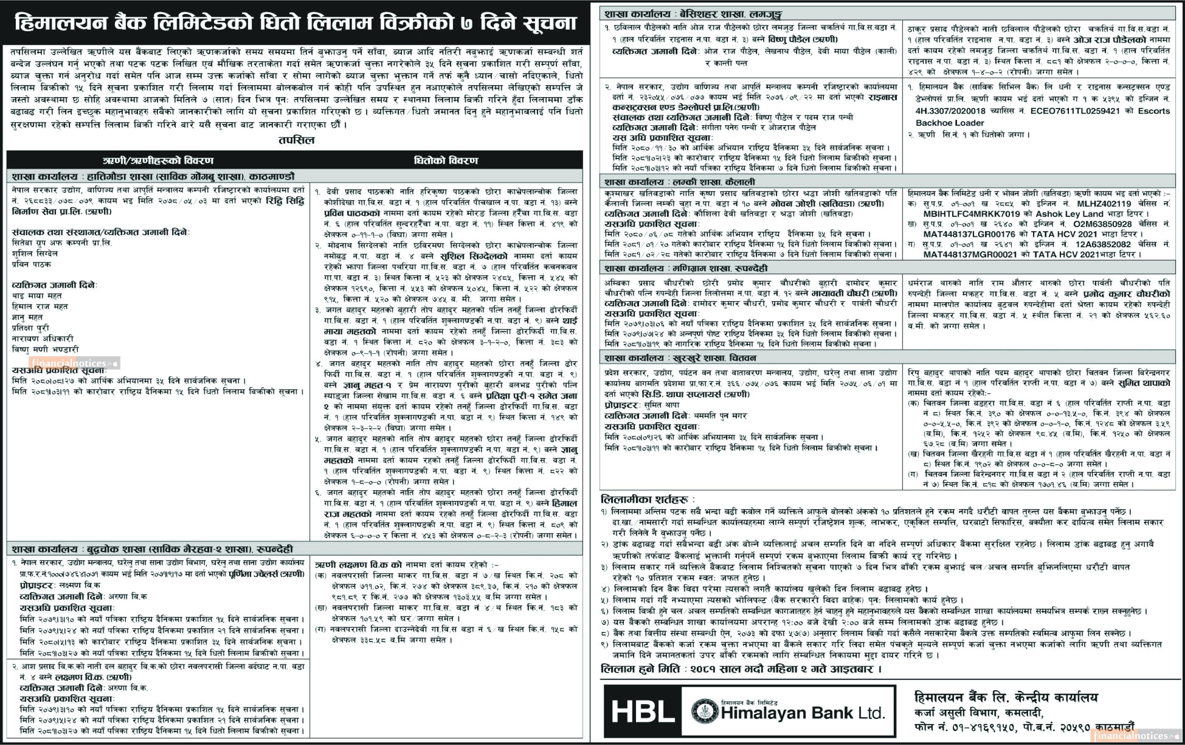 हिमालयन बैंकको धिता लिलाम विक्रीको ७ दिने सूचना -