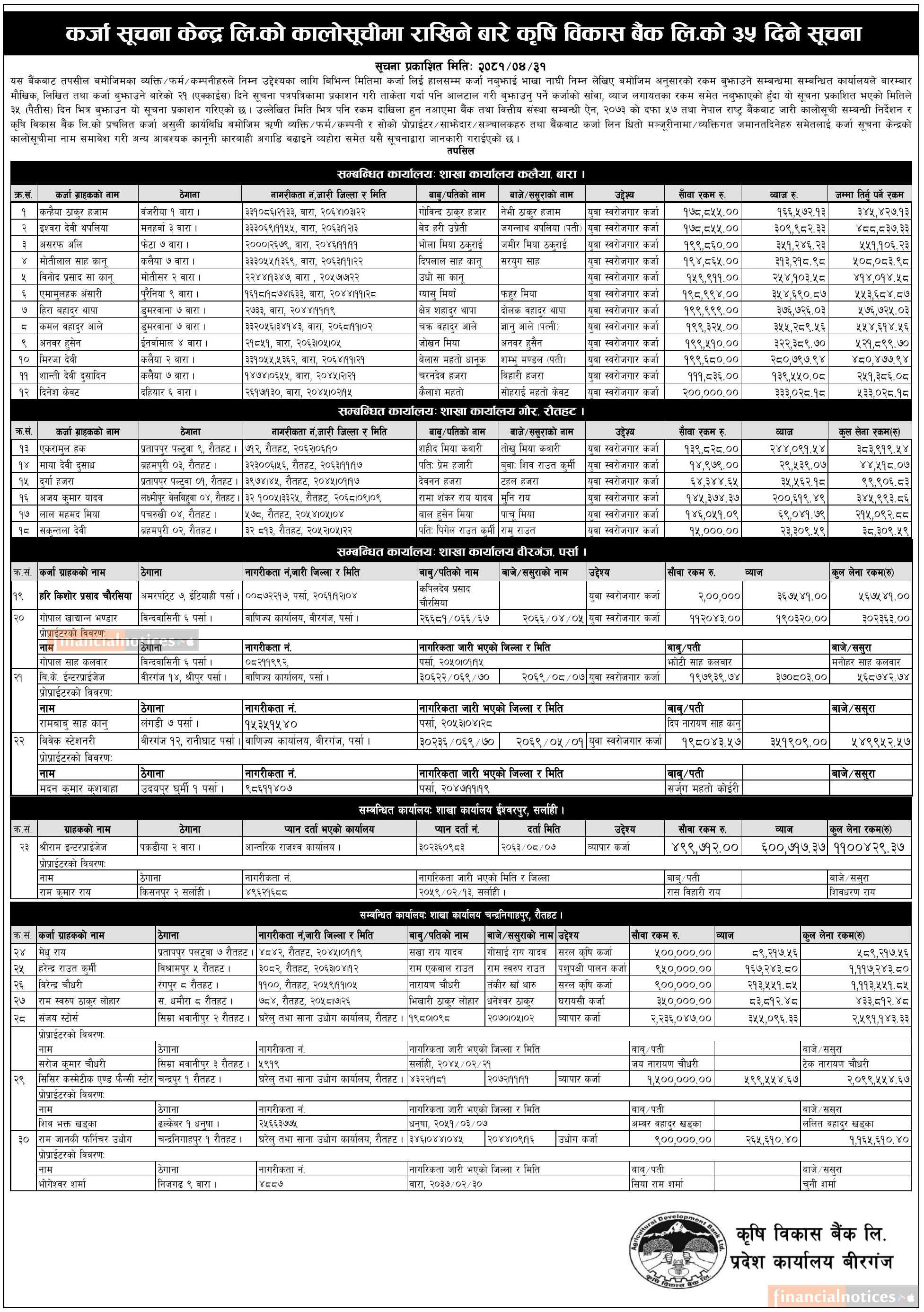कालोसूचीमा राखिनेबारे कृषि विकास बैंकको सूचना