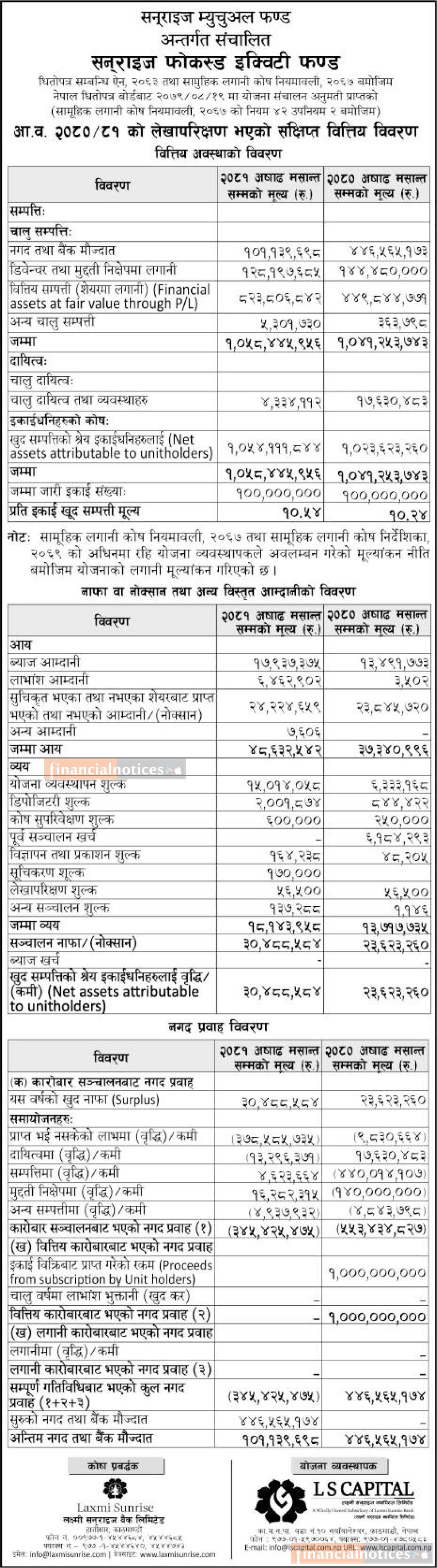 LS Capital has announced a book closure date of its Sunrise Focused Equity Fund.