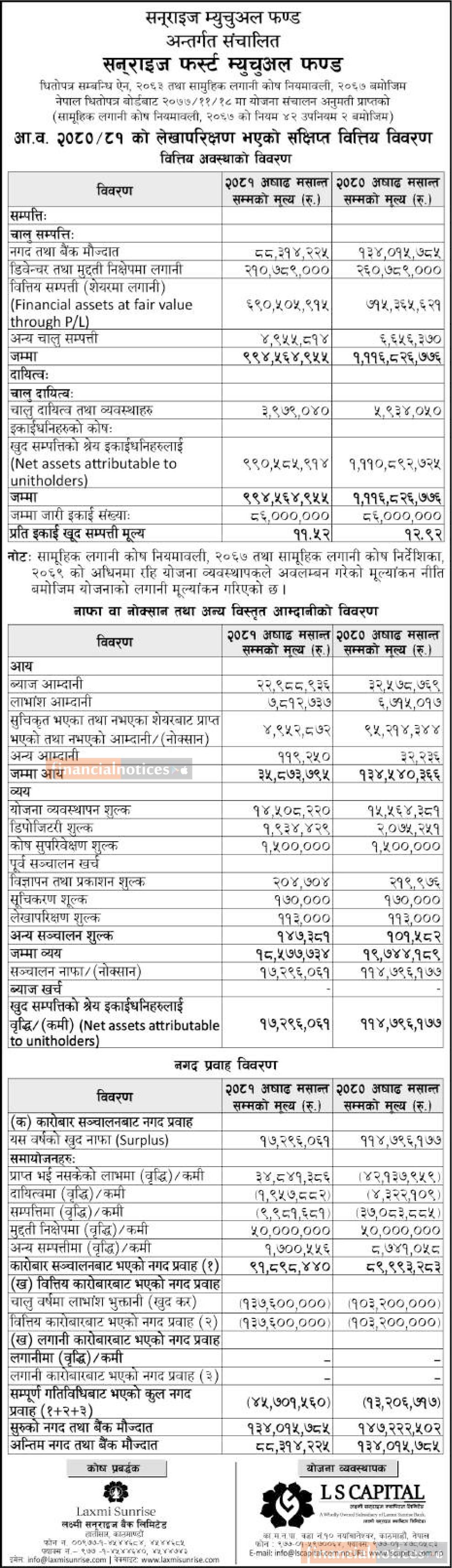 LS Capital has announced a book closure date of its Sunrise First Mutual Fund on 7th Bhadra, 2081