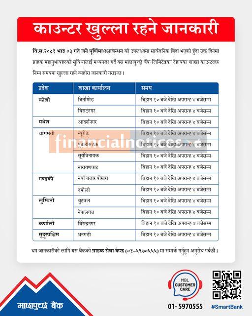 बैंकको काउन्टर खुल्ला रहने सम्बन्धी सूचना -