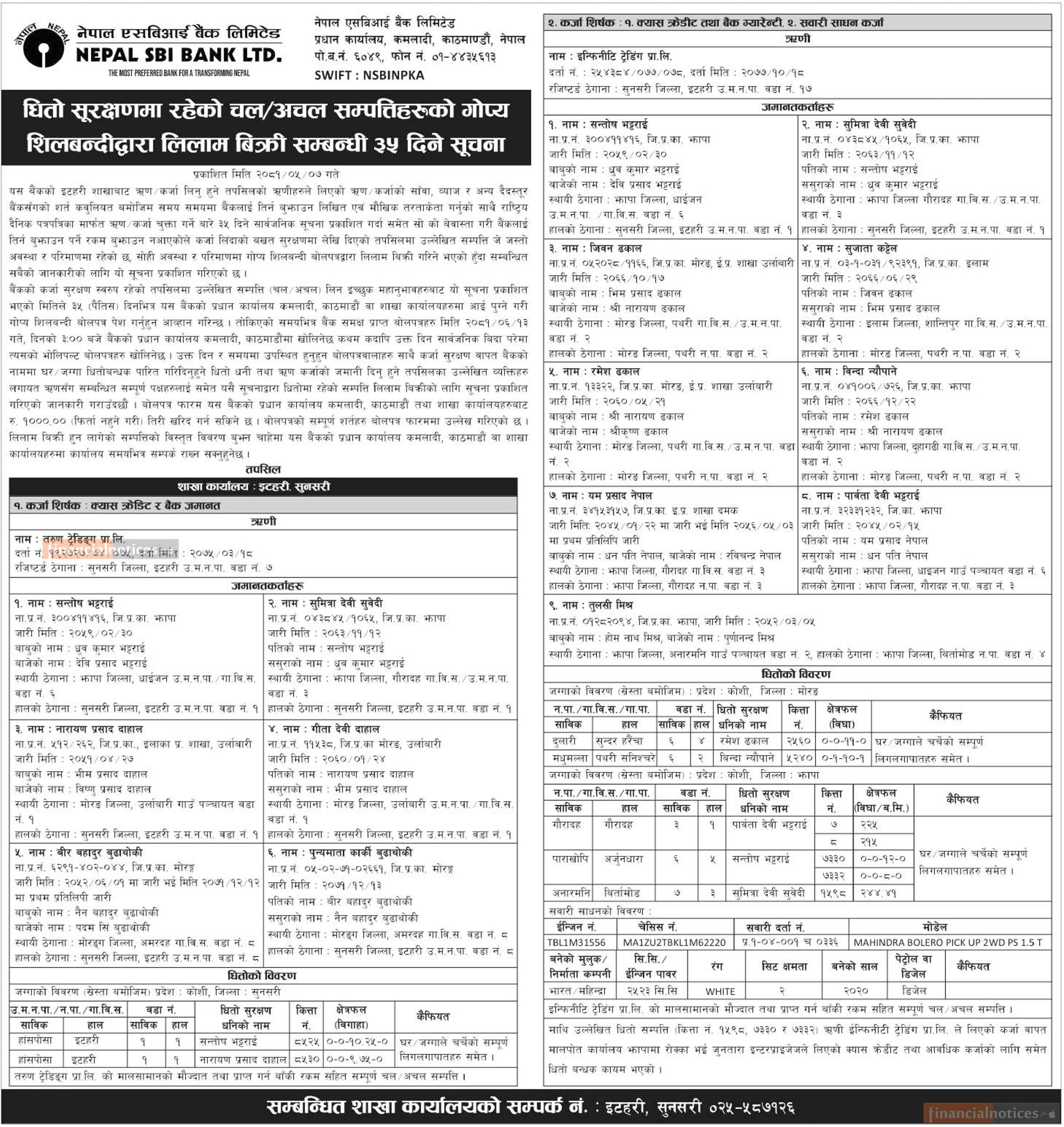 Nepal SBI Bank: Auction Notice for Non-Banking Assets at Geta-2, Kailali