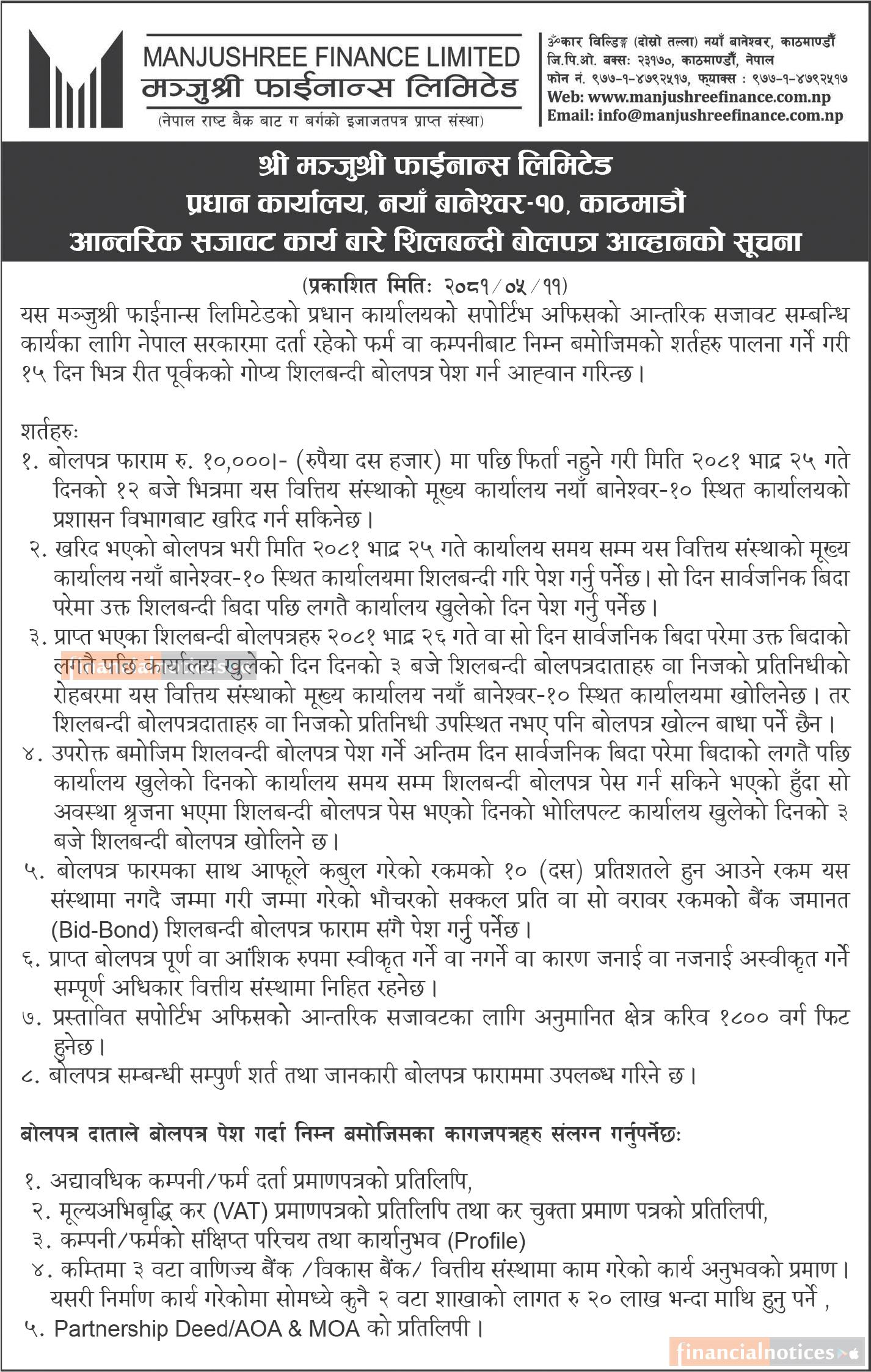 आन्तरिक सजावट कार्यबारे शिलबन्दी बोलपत्र आव्हानको सूचना -