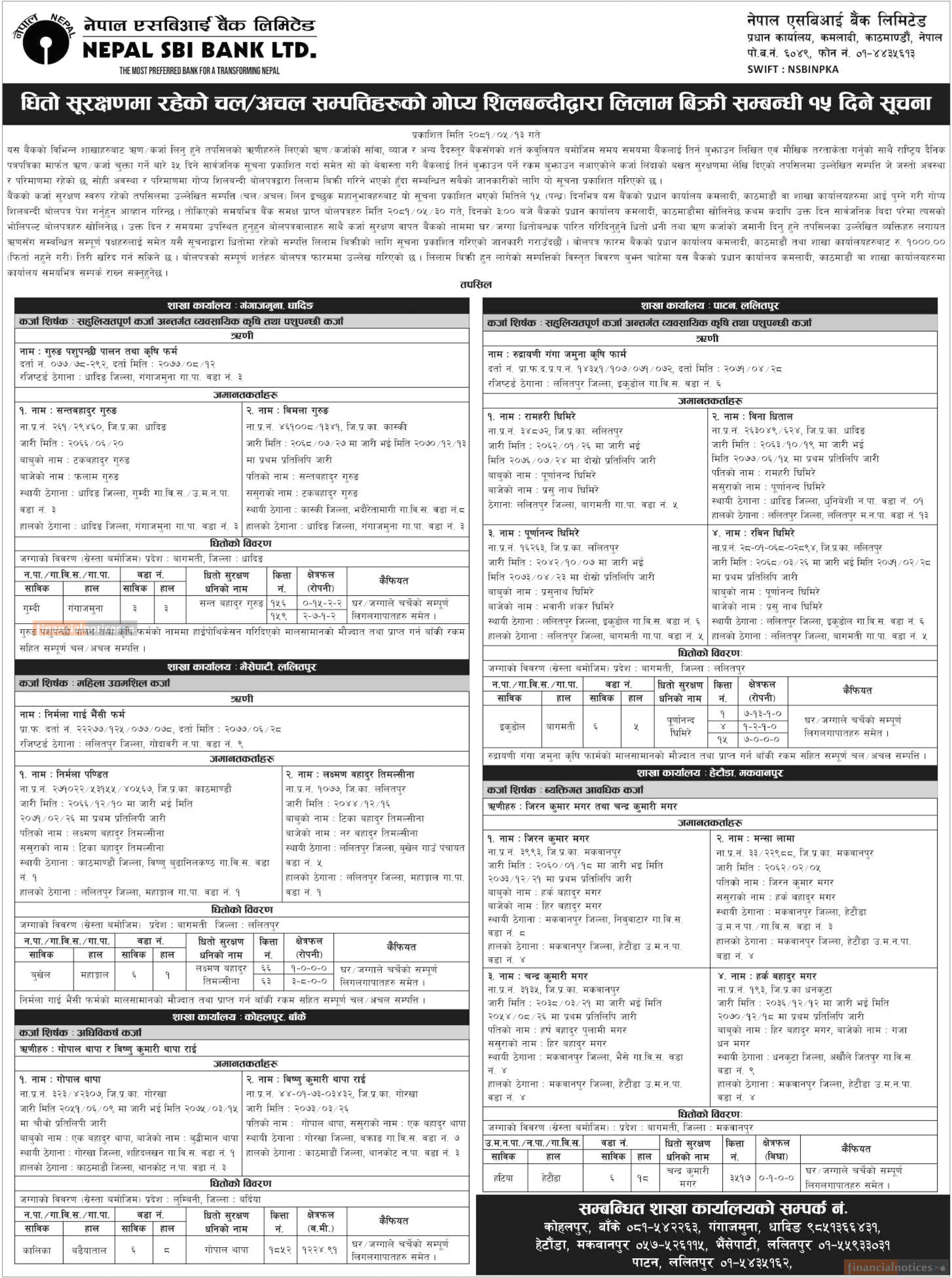 Nepal SBI Bank: Auction Notice for Non-Banking Assets at Geta-2, Kailali