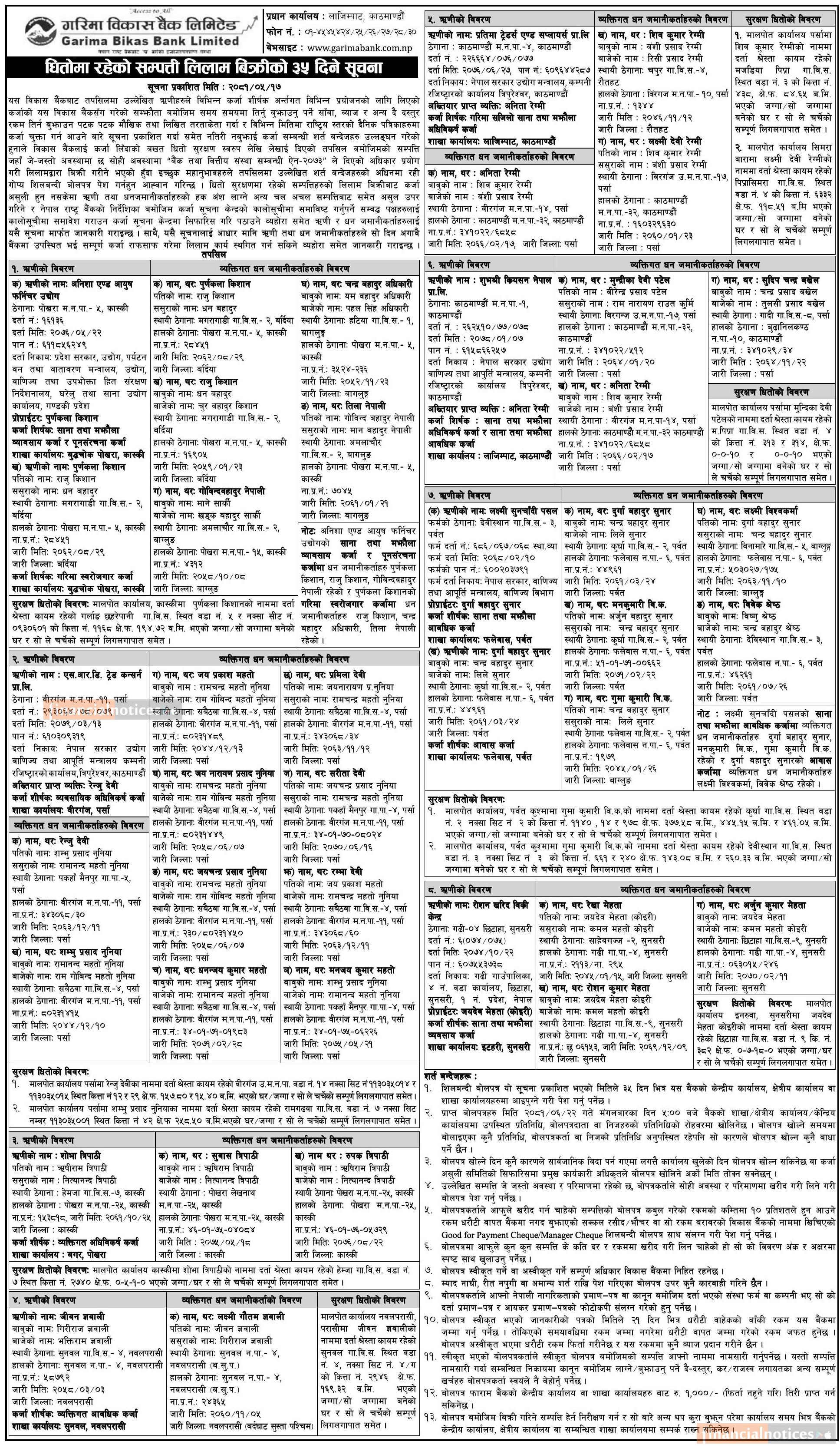 धितोमा रहेको सम्पत्ति लिलाम बिक्रीको ३५ दिने सूचना