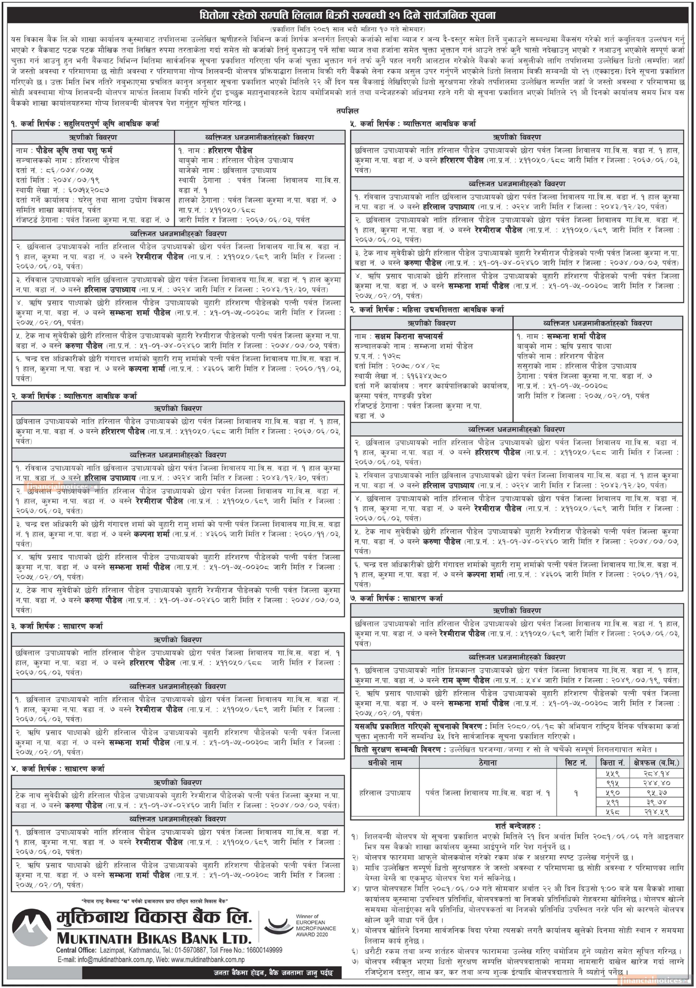 धितोमा रहेको सम्पत्ति लिलाम बिक्री सम्बन्धी २१ दिने सार्वजनिक सूचना