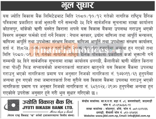 Kumari Bank Auction Notice for Non-Banking Assets at Mahendranagar, Kanchanpur -