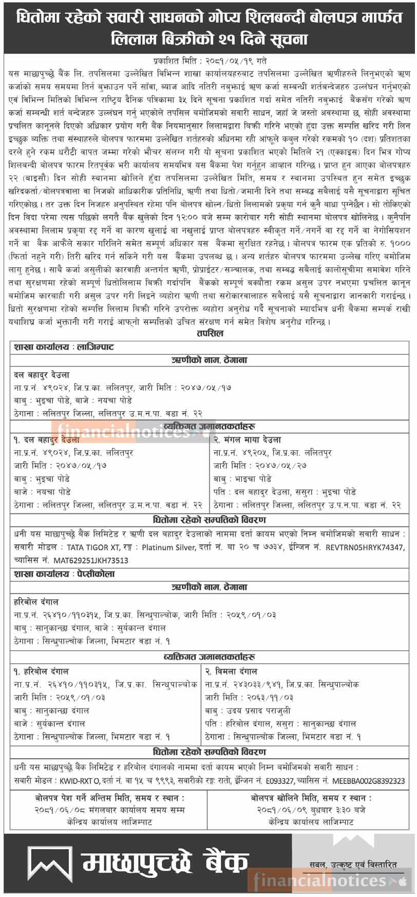 Kumari Bank Auction Notice for Non-Banking Assets at Mahendranagar, Kanchanpur -