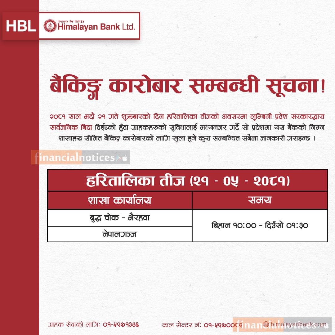 बैंकिङ्ग कारोबार सम्बन्धी सूचना -