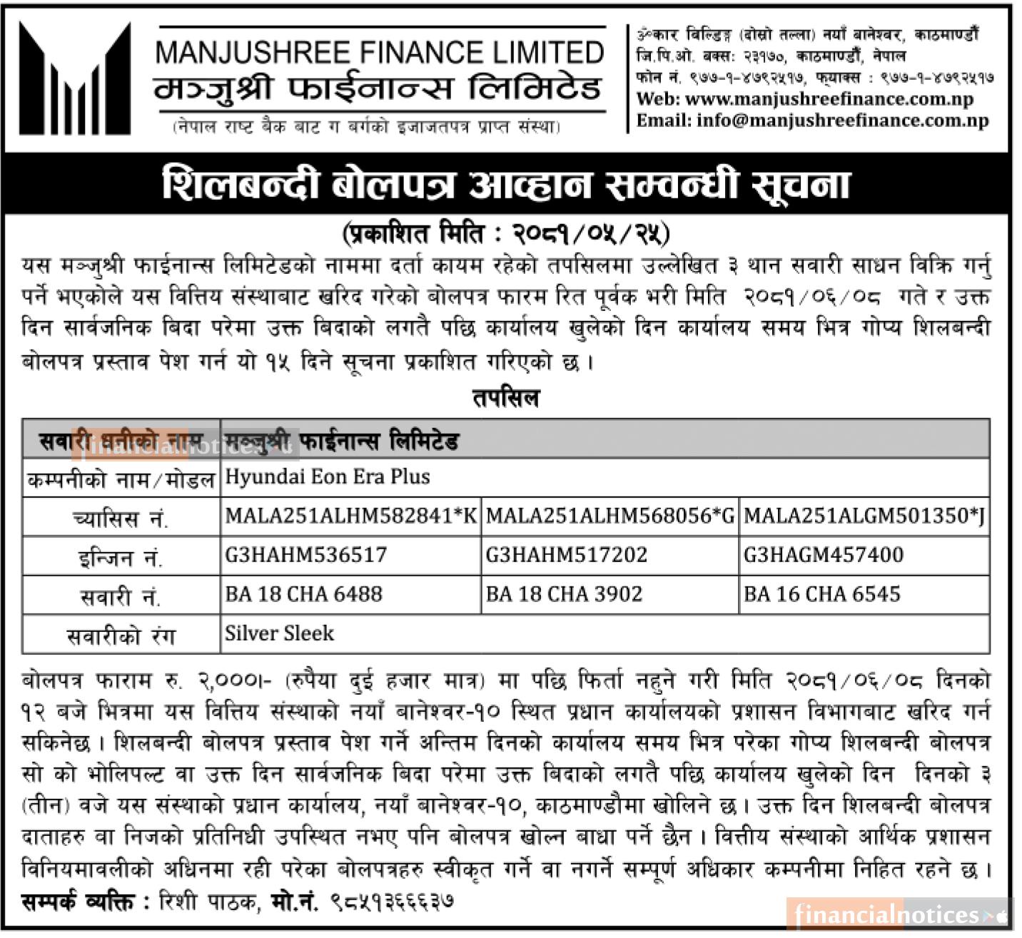 शिलबन्दी बोलपत्र आव्हान सम्बन्धी सूचना
