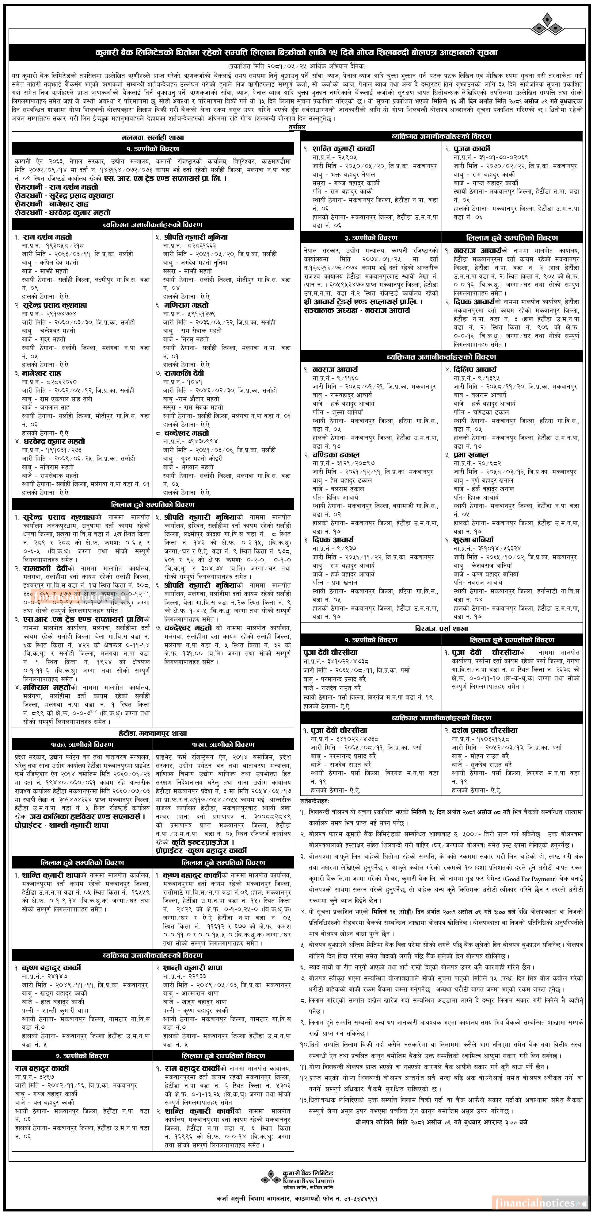 Published by Kumari Bank Ltd (KBL) on 2081-5-25