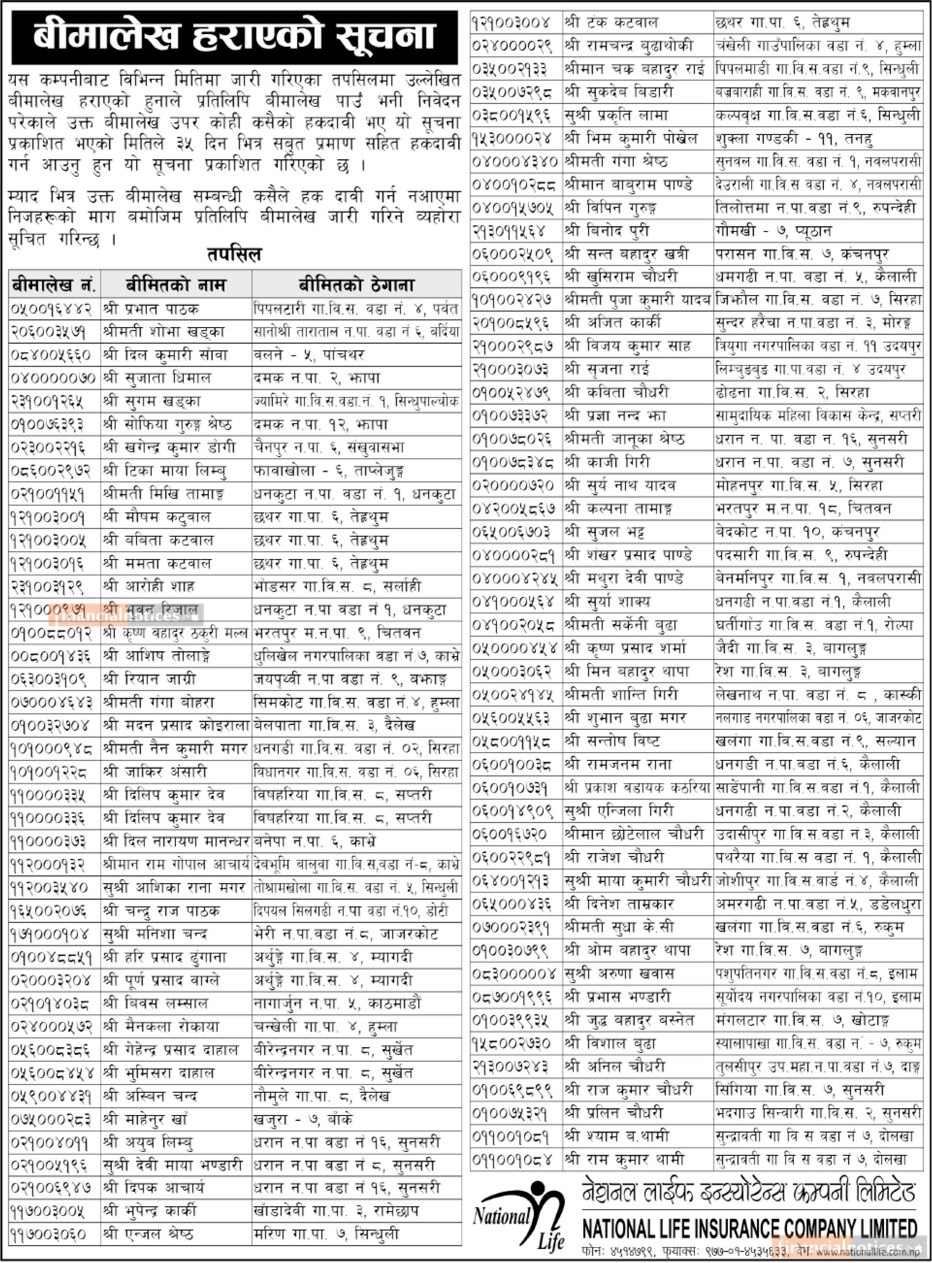 Published by National Life Insurance Company Limited on 2081-5-28