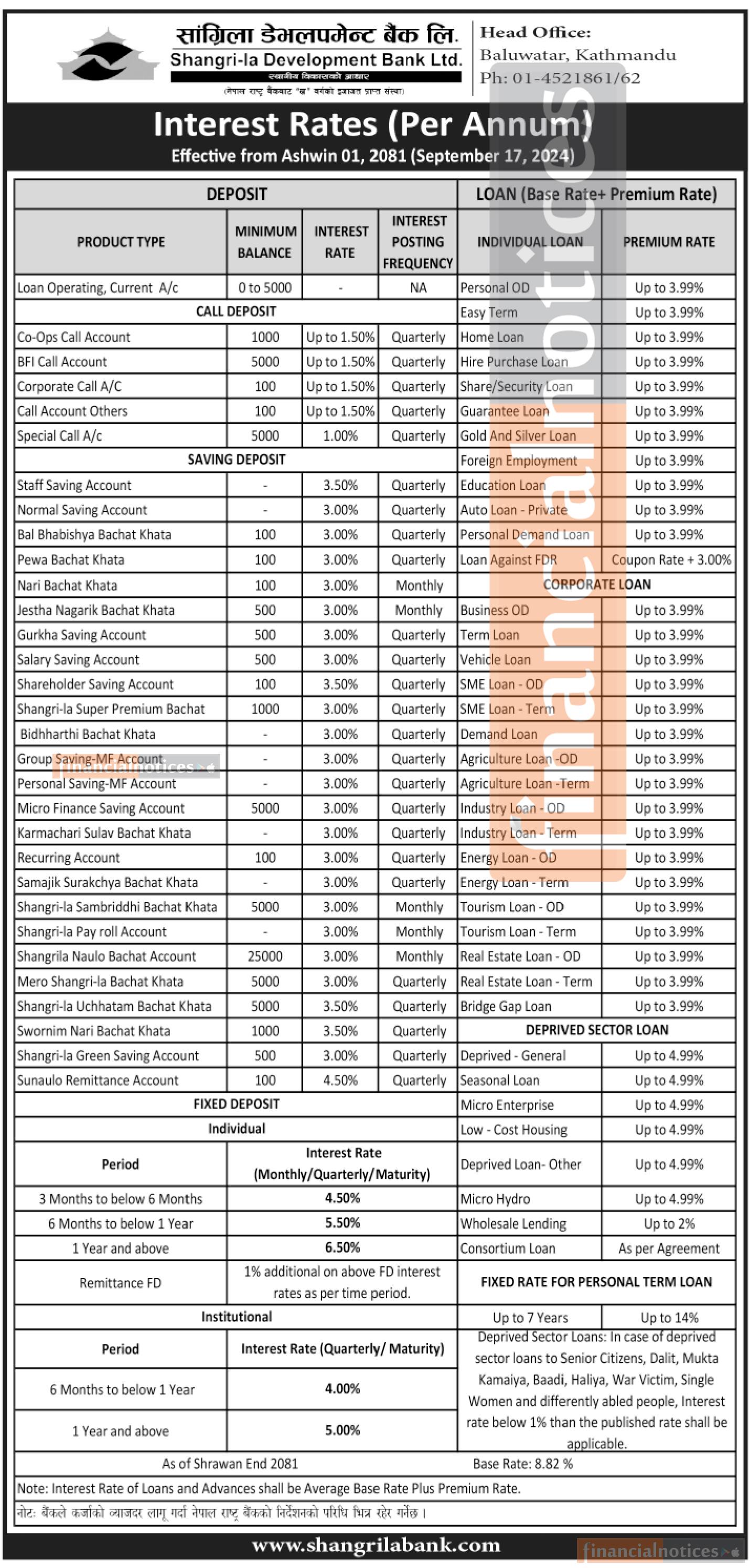 सांग्रिला डेभलपमेण्ट बैंकको ब्याजदर परिवर्तन सम्बन्धी सूचना -