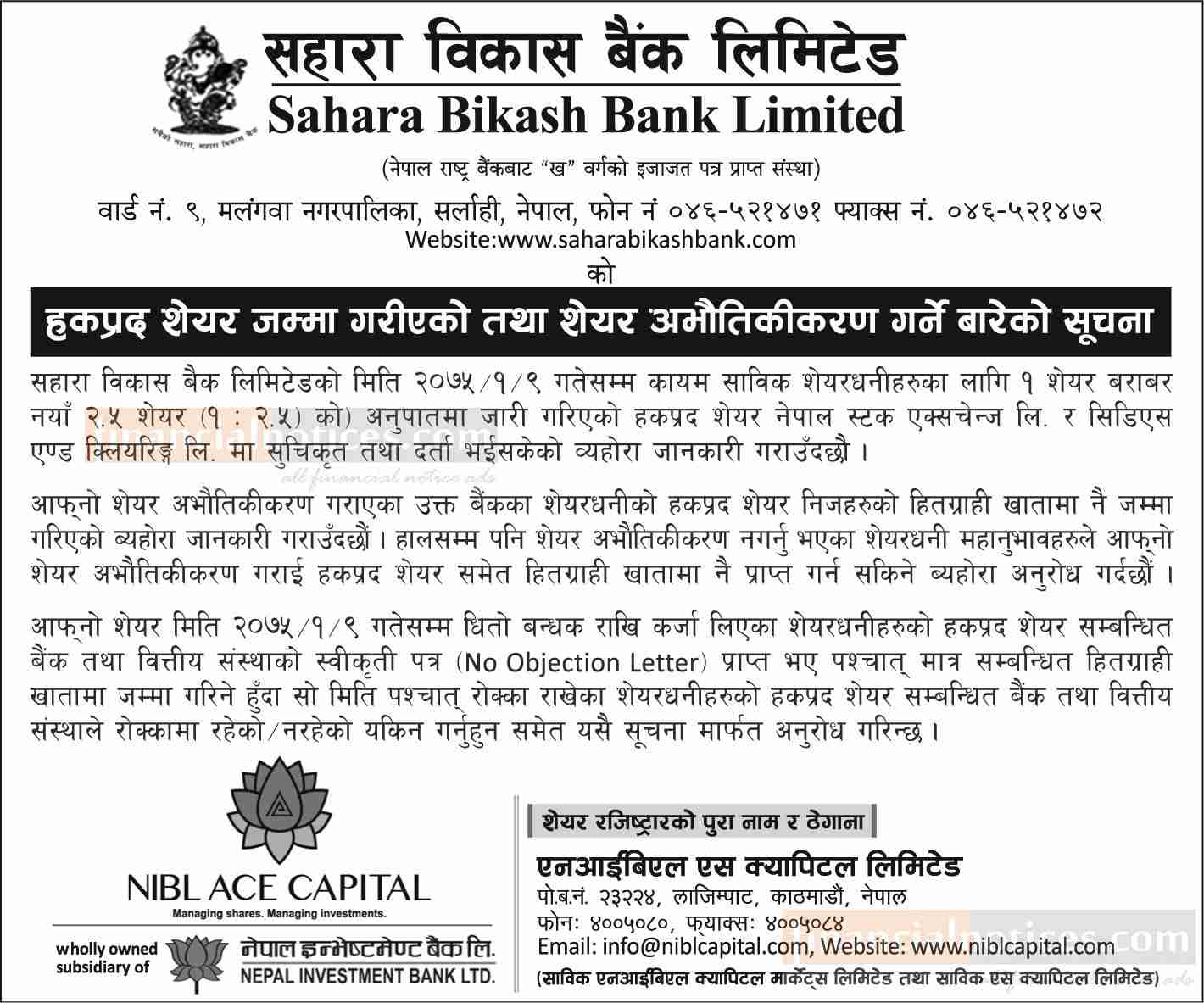हकप्रद शेयर जम्मा गरेको बारे सूचना