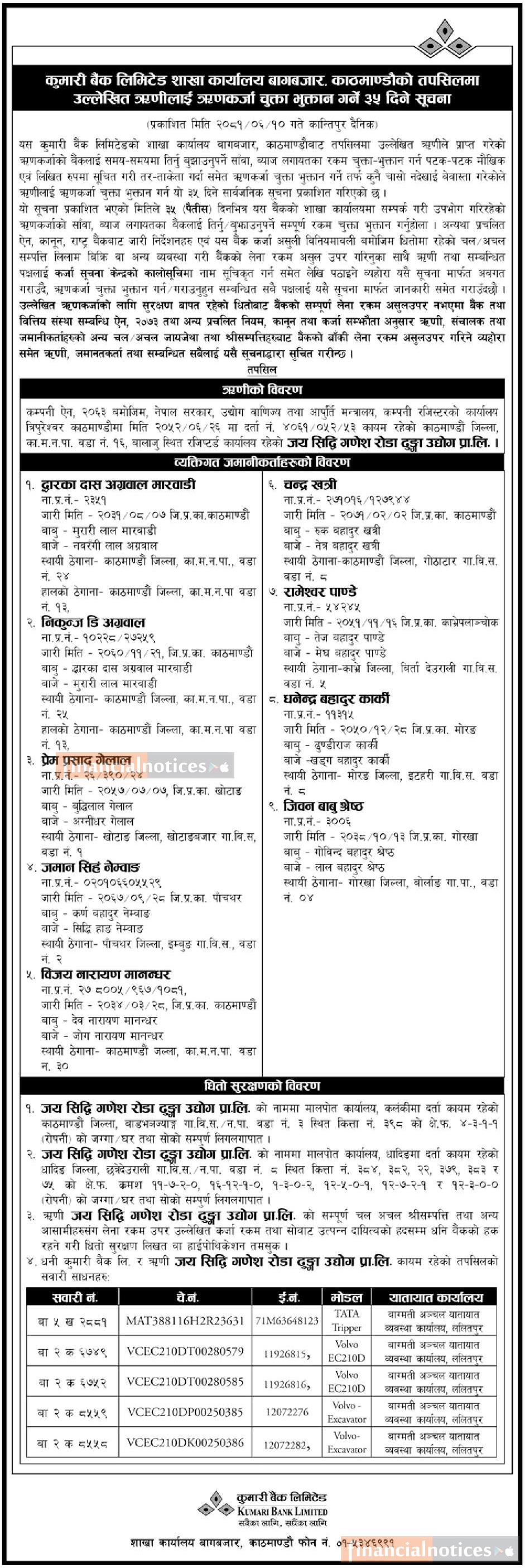 ऋणकर्जा चुक्ता भुक्तान गर्नेबारे ३५ दिने सूचना -