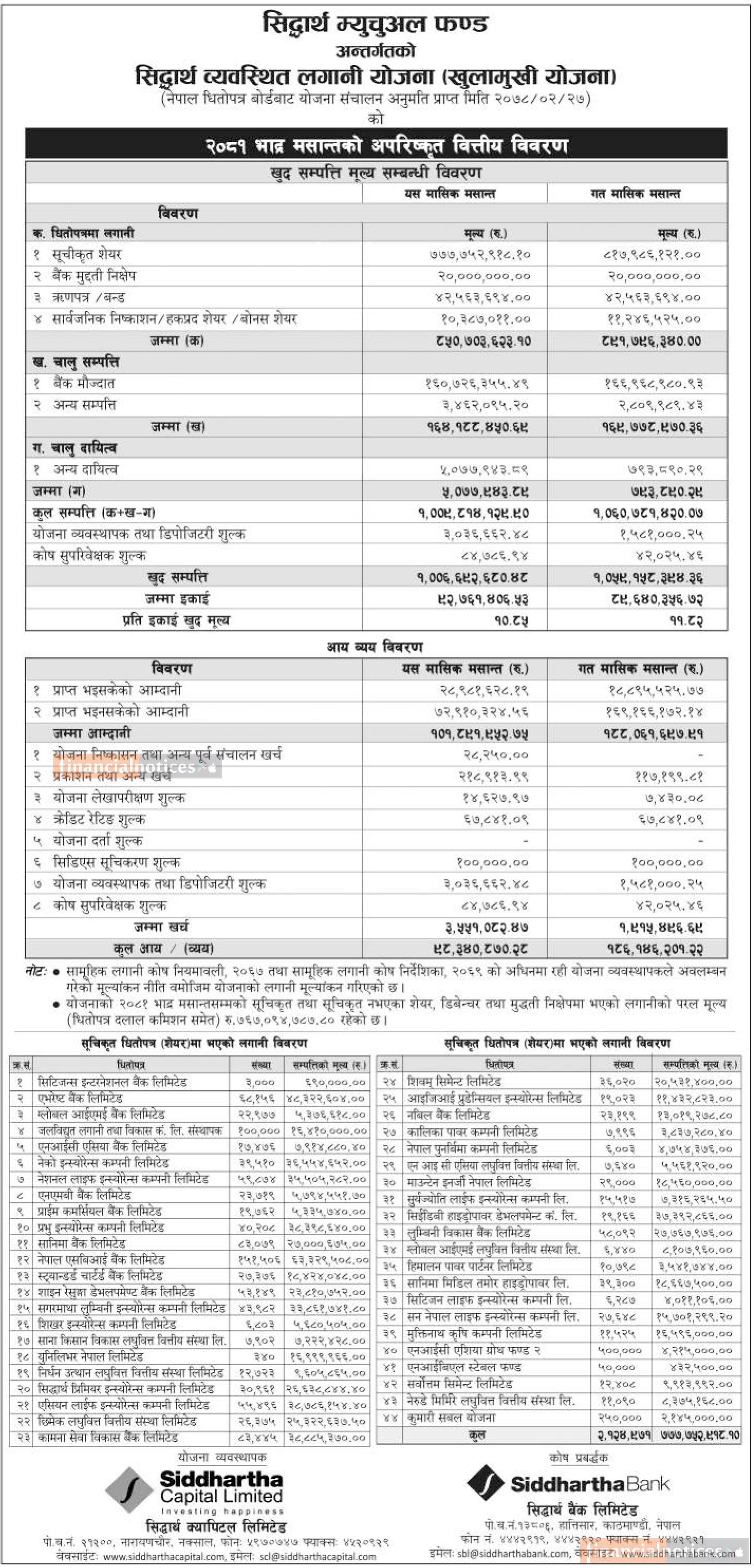 Siddhartha Capital has published Siddhartha Systematic Investment Scheme NAV till Bhadra, 2081