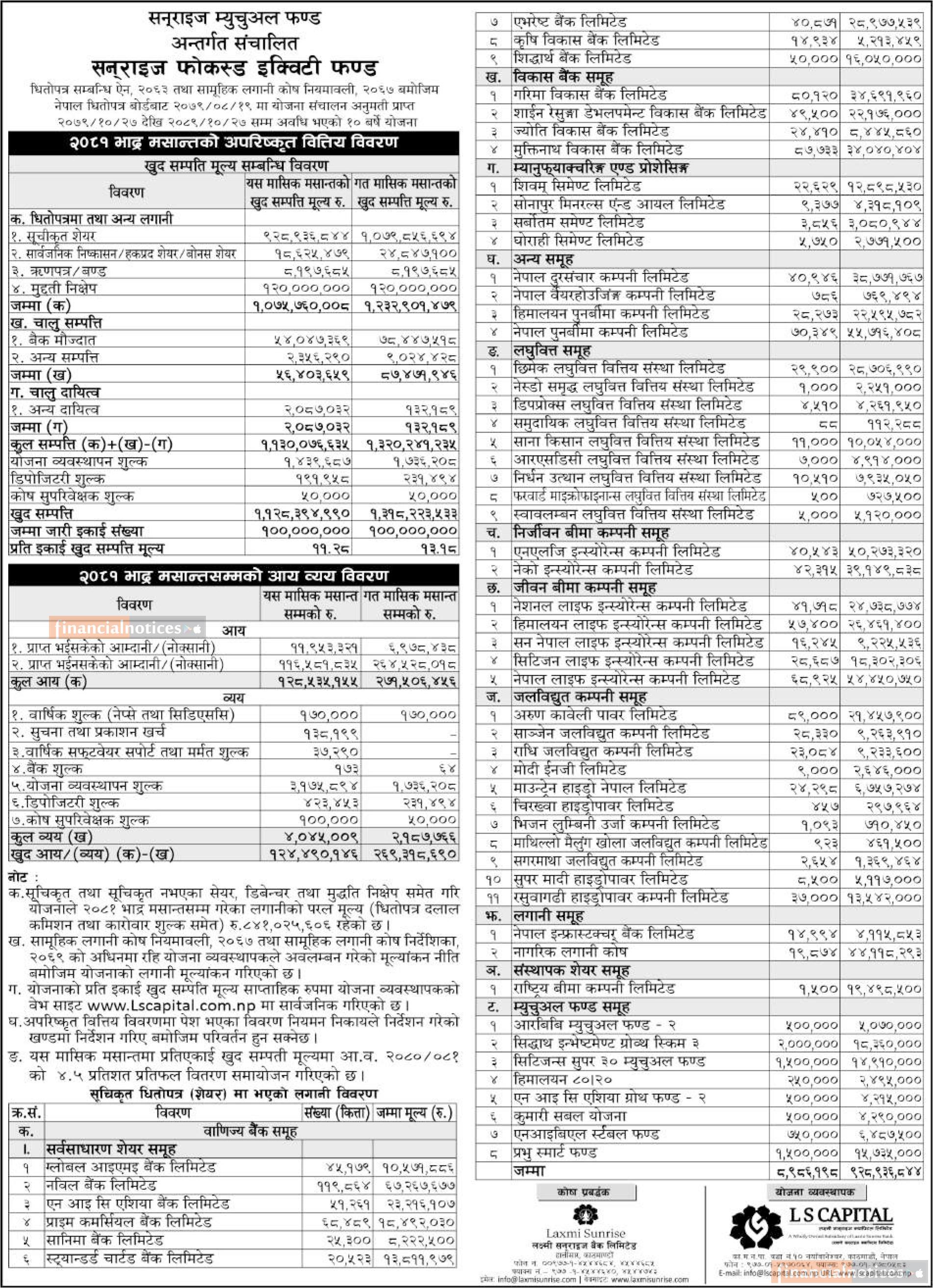 LS Capital has published "Sunrise Focused Equity Fund" Net Assets Value till Bhadra, 2081