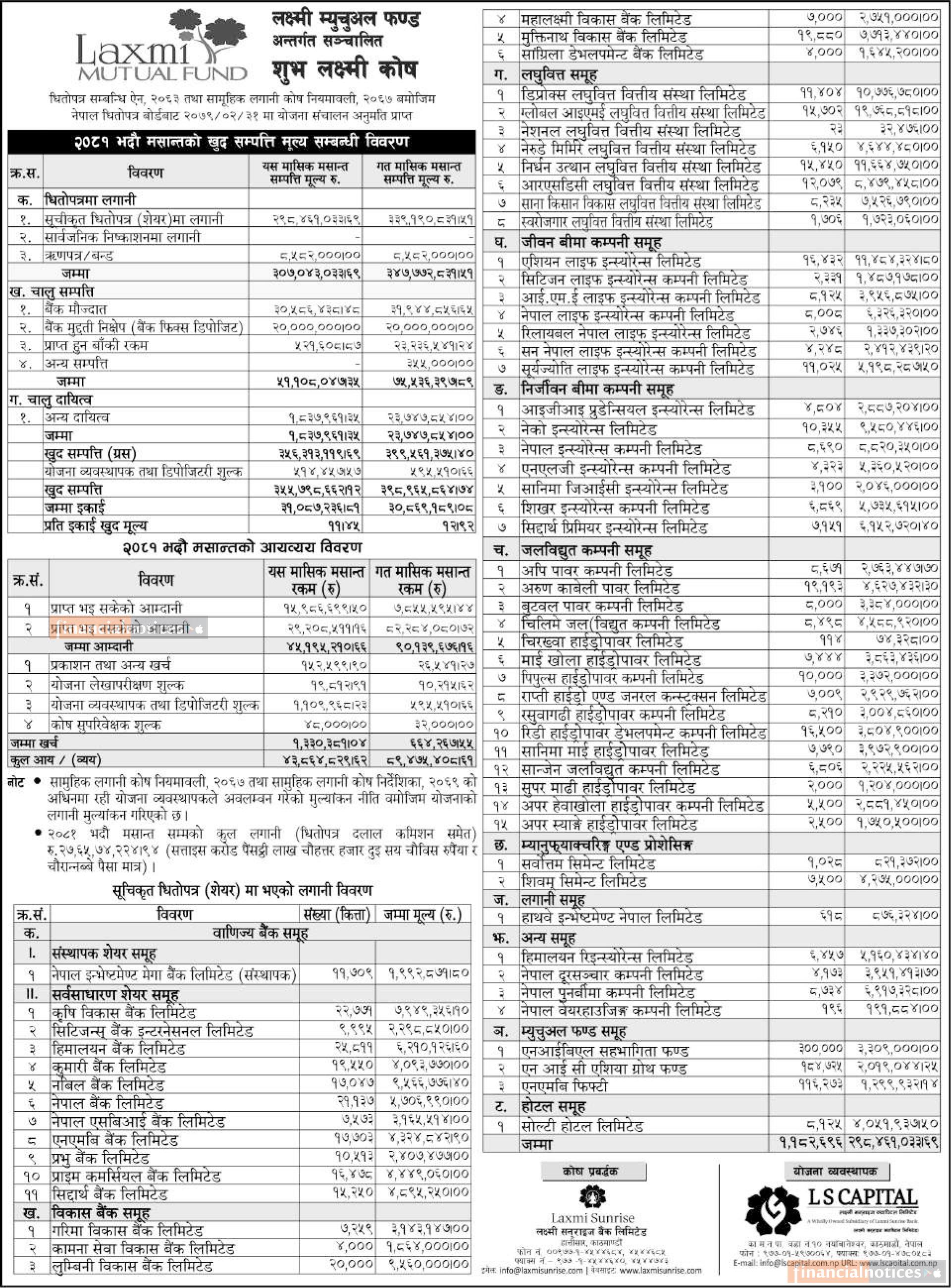 LS Capital has published the “Shubha Laxmi Kosh” Net Asset Value till Bhadra, 2081