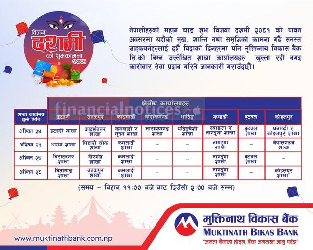 मुक्तिनाथ विकास बैंकको शाखा खुल्ला रहने सम्बन्धी सूचना - Banking Hours -