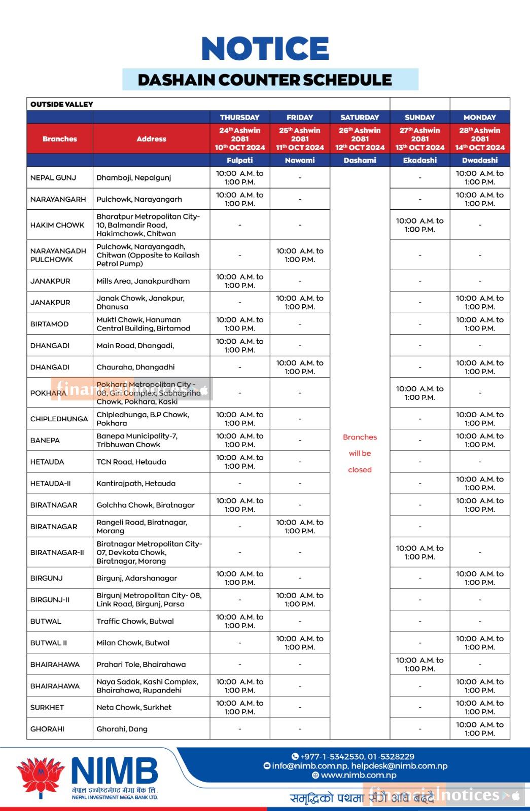 नेपाल इन्भेष्टमेण्ट मेगा बैंकको शाखा कतिबजेसम्म खुल्ला रहन्छन् ?