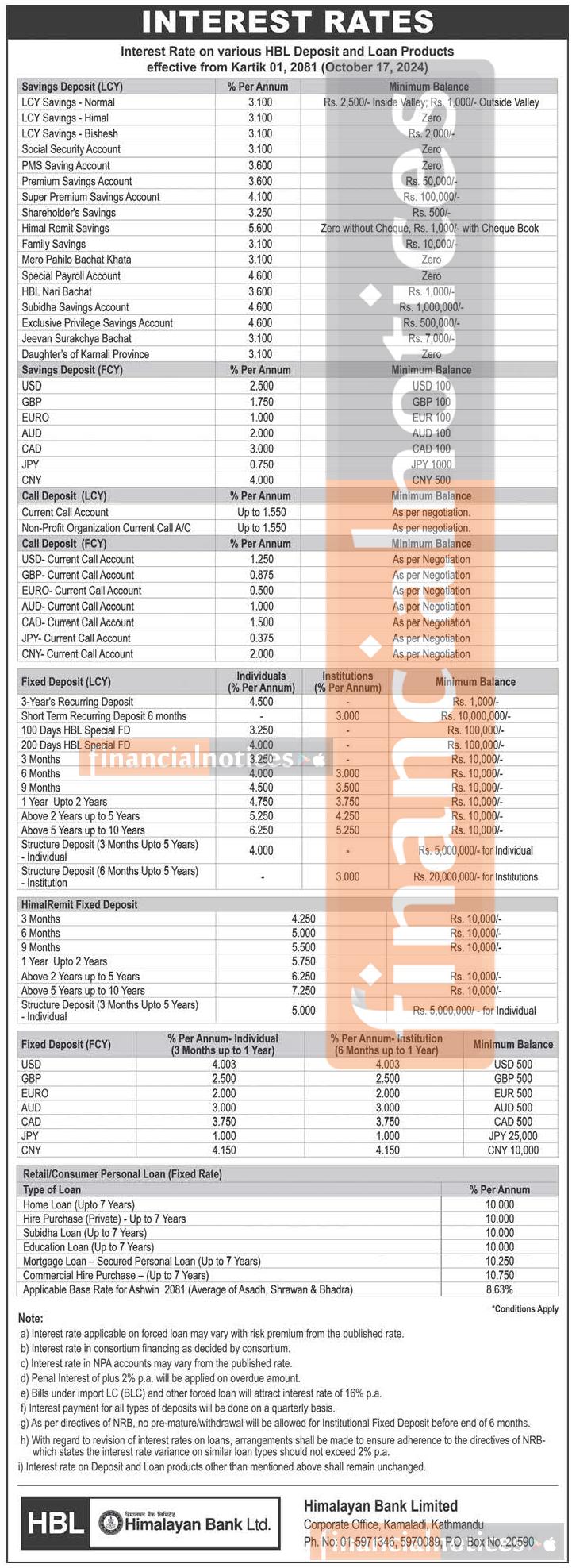 हिमालयन बैंकको नयाँ ब्याजदर सार्वजनिक, कुन खातामा कति पुग्यो ? - Interest Rates -
