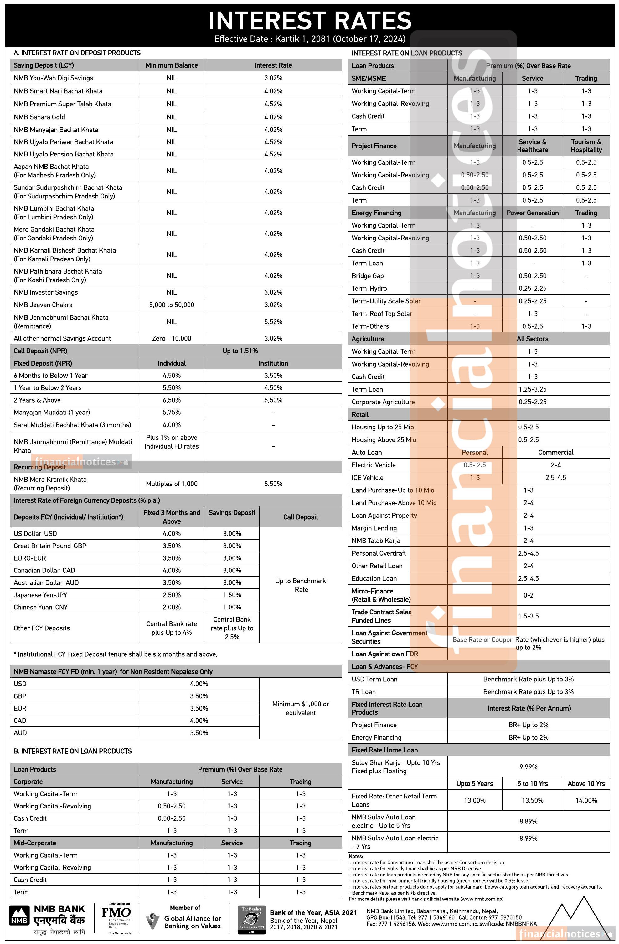 एनएमबी बैंकको नयाँ ब्याजदर सूचना प्रकाशित - Interest Rates -