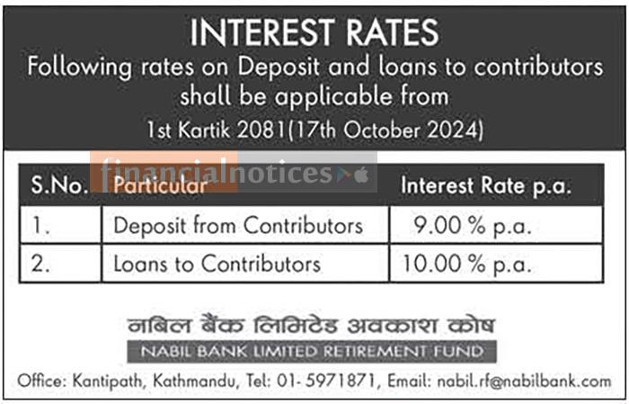 Nabil Bank Limited Retirement Fund New Interest Rates Effective 1st Kartik, 2081
