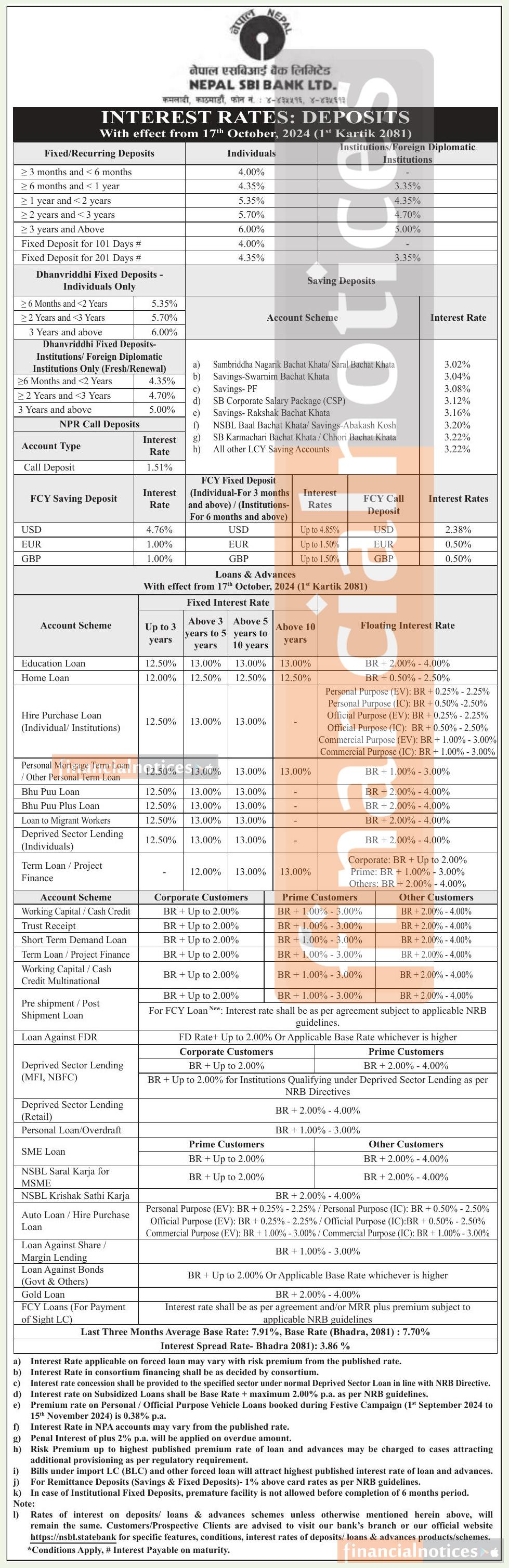 नेपाल एसबिआई बैंकको ब्याजदर सूची : कार्तिक १ बाट लागु - Interest Rates -