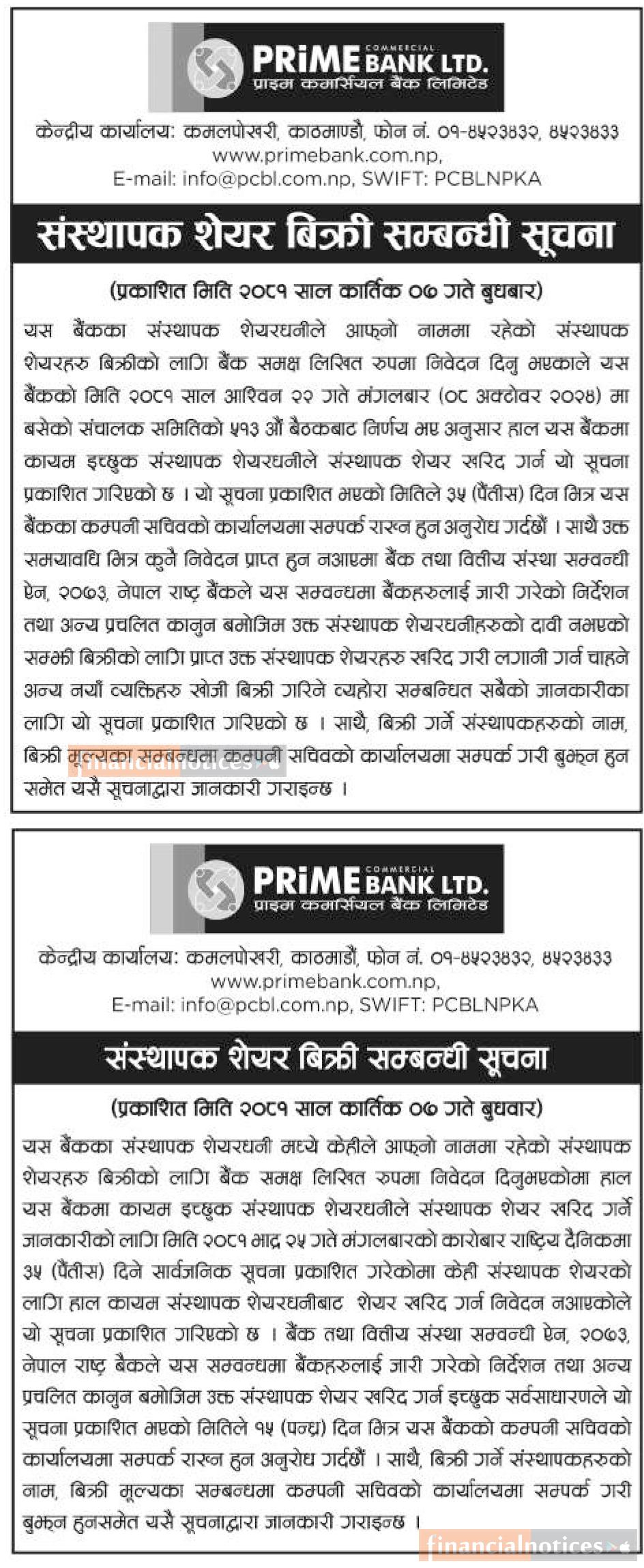संस्थापक शेयर बिक्री सम्बन्धी सूचना