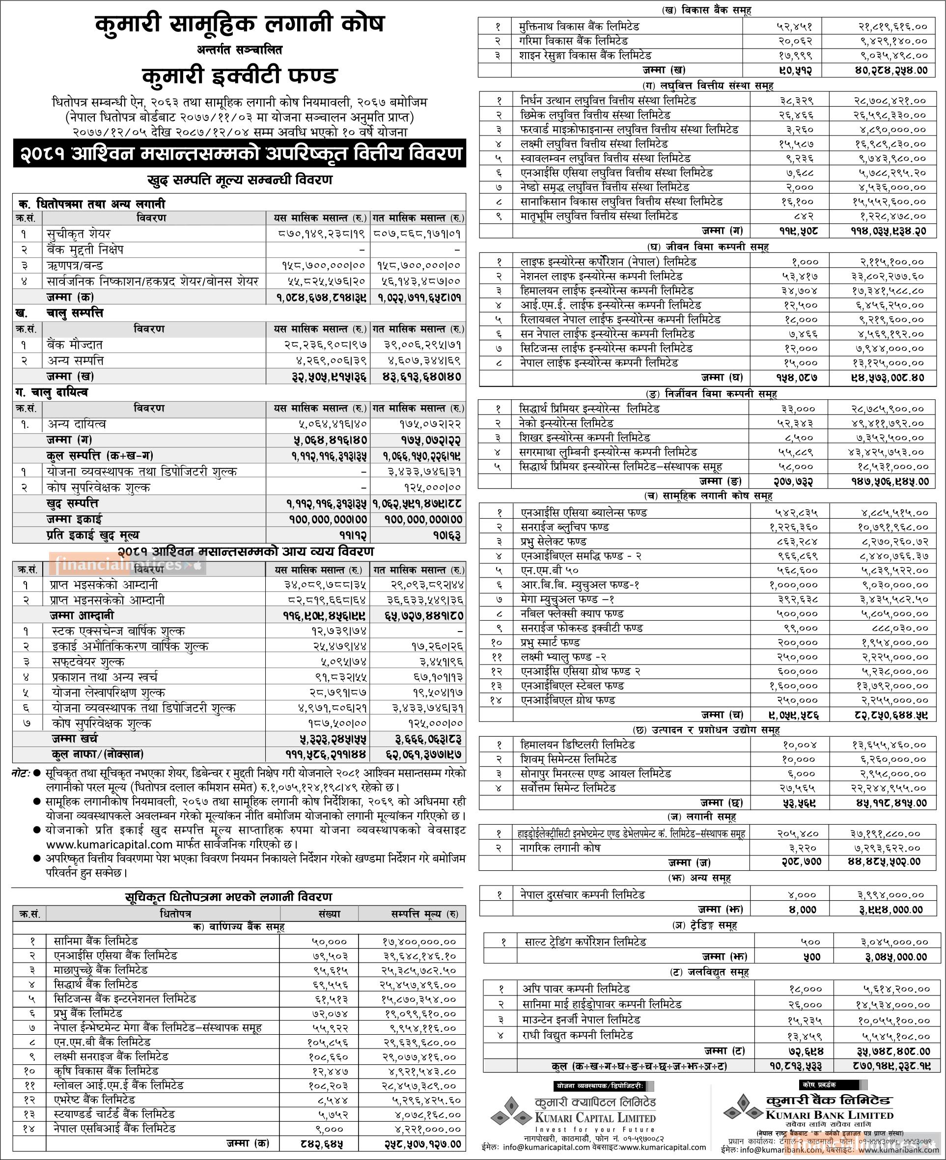 Kumari Capital has published Kumari Equity Fund Net Asset Value till Ashwin, 2081