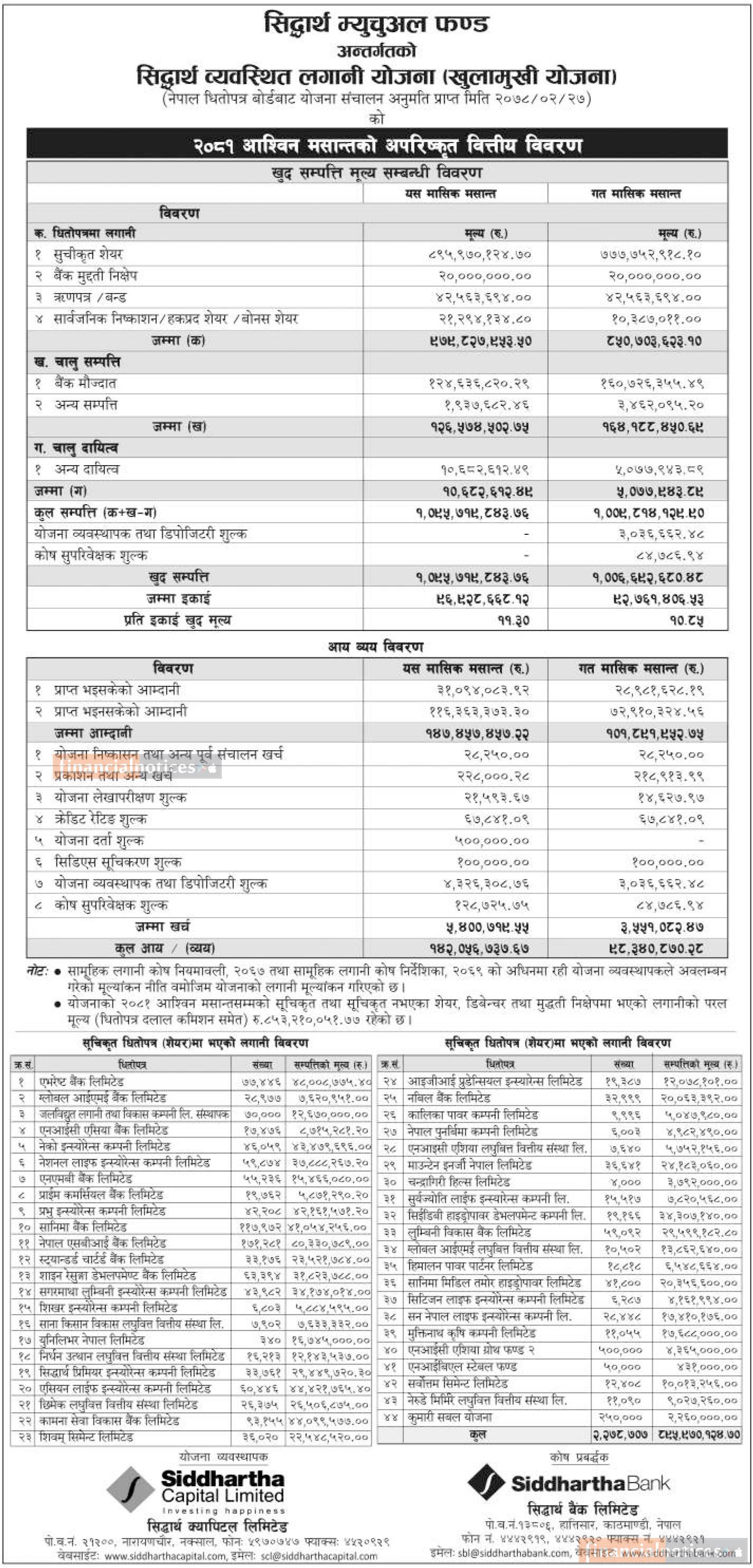 Siddhartha Capital published NAV for "Siddhartha Systematic Investment Scheme" till Ashwin 2081