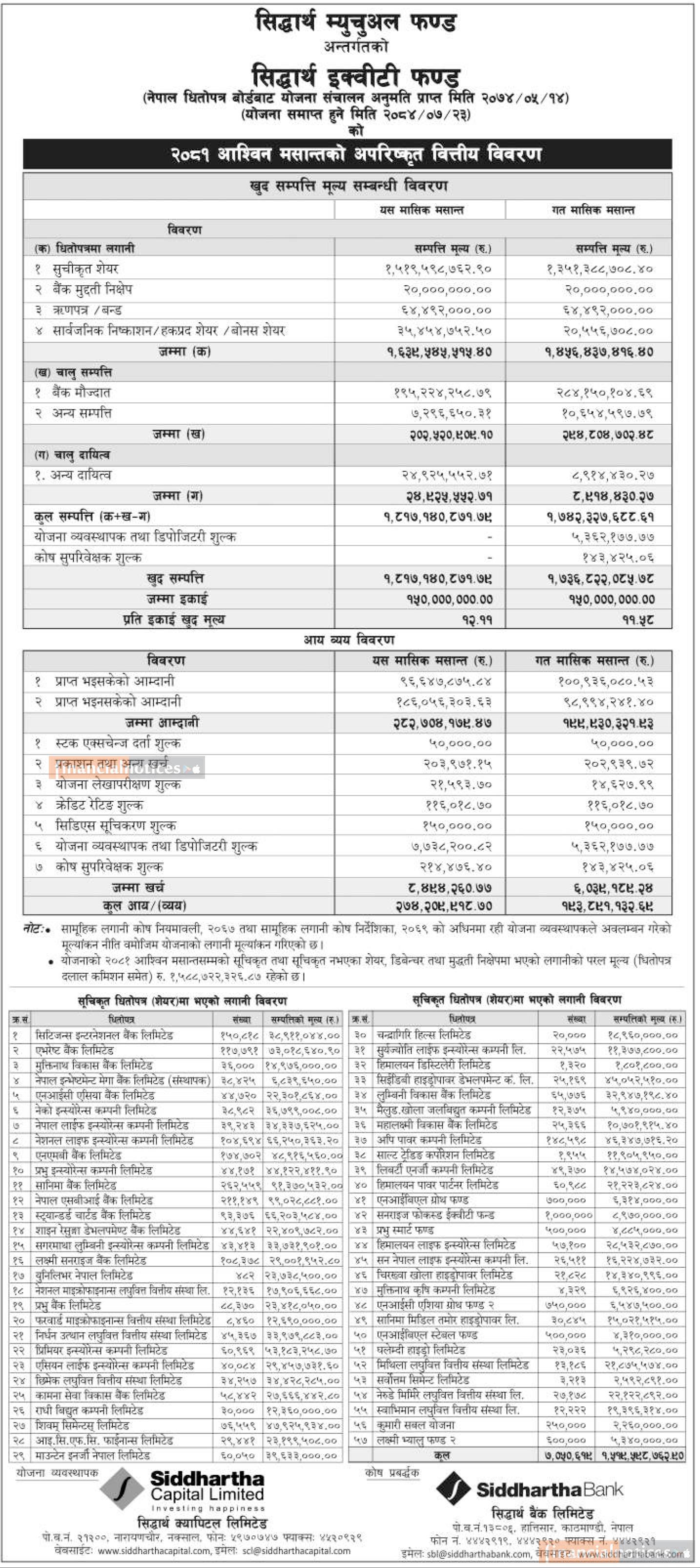 Siddhartha Capital published NAV for "Siddhartha Equity Fund" till Ashwin 2081